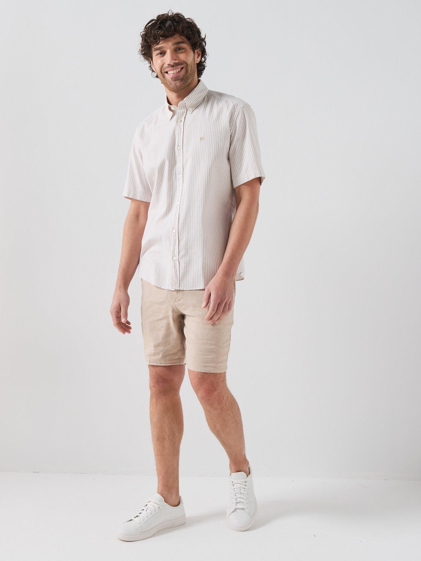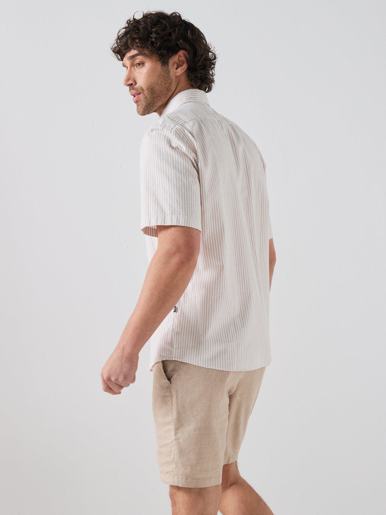 BOSS H-Liam Button Down Bb Short Sleeve Stripe ShirtSize & Fit