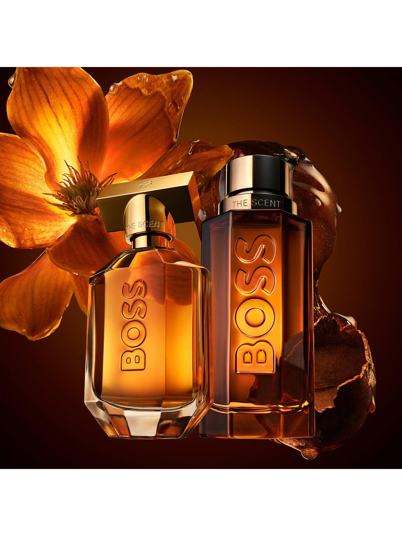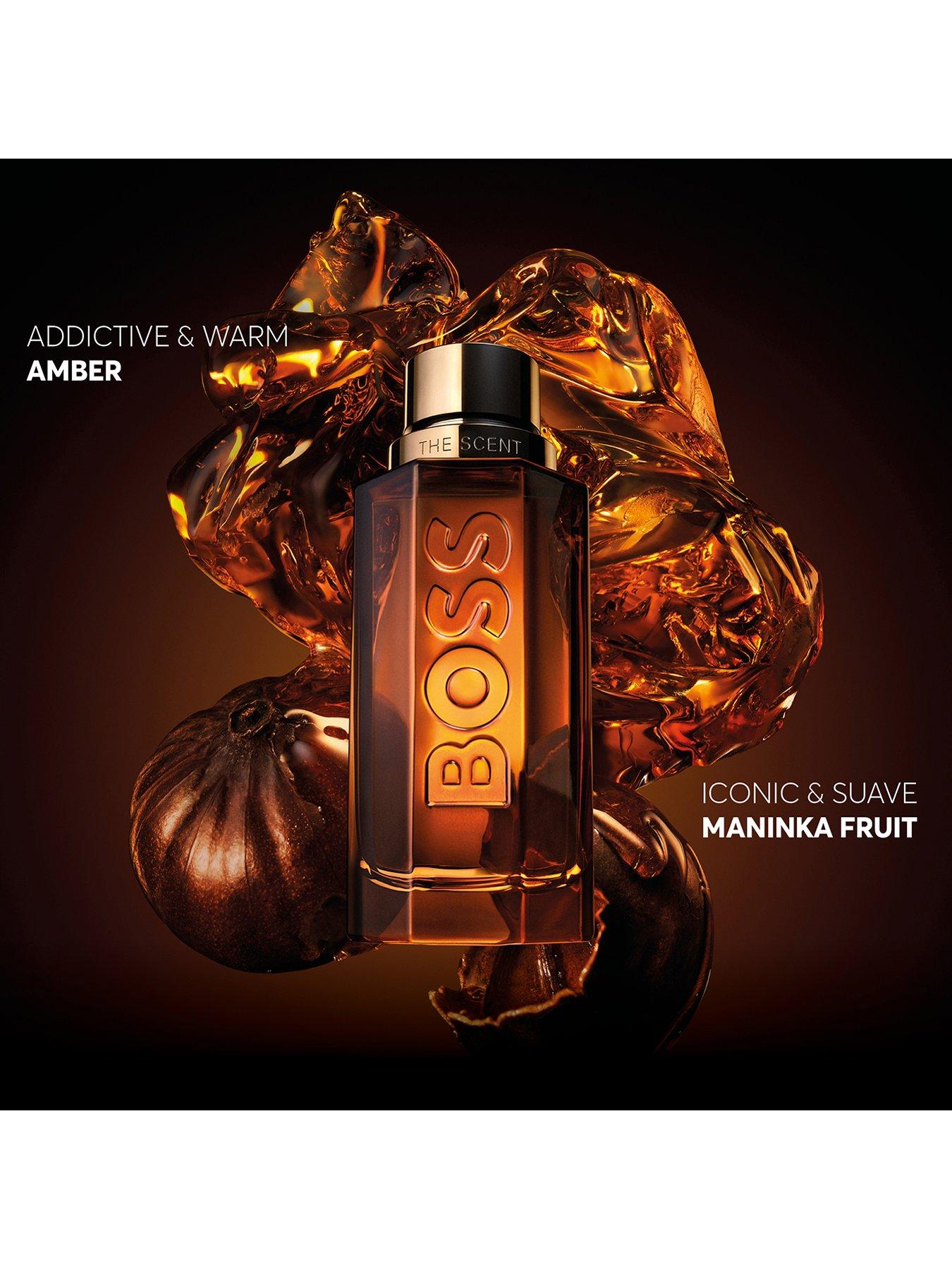 BOSS Hugo Boss The Scent EDP Intense For Him 100mlFuse the power of attraction with BOSS The Scent Eau de Parfum Intense for Him, an irresistible BOSS fragrance for men that captures the smouldering connection between a power couple.Radiating sensuality, this ambery-fruity gourmand scent blends sultry contrasts. Iconic, suave Maninka fruit-crafted exclusively for BOSS-intertwines with opulent, warm Amber accord to form a rich, seductive liqueur of sweetness and raw intensity that fuses the senses. BOSS The Scent Eau de Parfum Intense for Him redefines empowering sensuality in a striking bottle, crowned with a gunmetal-silver cap engraved with the Double-B monogram. Deep, glossy brown lacquered glass, adorned with an oversized BOSS logo, reflects the rich intensity of the men's fragrance within and subtly echoes the glowing heat of the scent. With its multi-faceted silhouette, the bottle captures the fierce fusion of a power couple in perfect harmony.