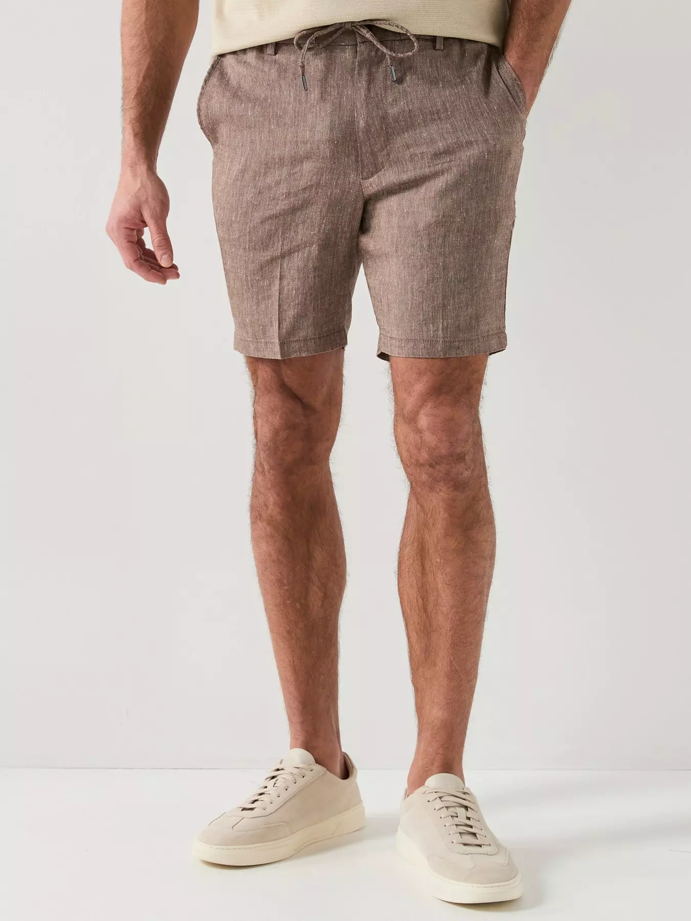 BOSSModern Fit Linen Drawstring Shorts - Brown