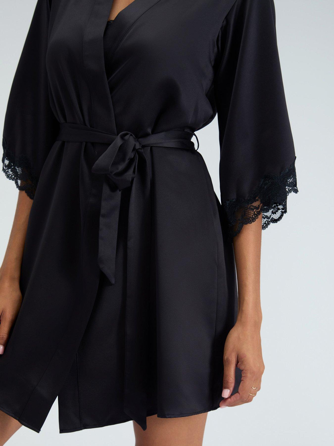 Boux Avenue Boux Avenue Amelia Satin Short Robe - BlackThe height of indulgence, the Amelia matte satin robe features a silky satin finish for a luxurious feel and is made from 100% polyester fibres. Short-length robe Luxuriously silky satin feel Premium lace trim detailing Self-tie waist belt 100% polyester (excluding lace trims) Available in both classic and limited edition colours Complete the look with our Amelia matte satin nightwear