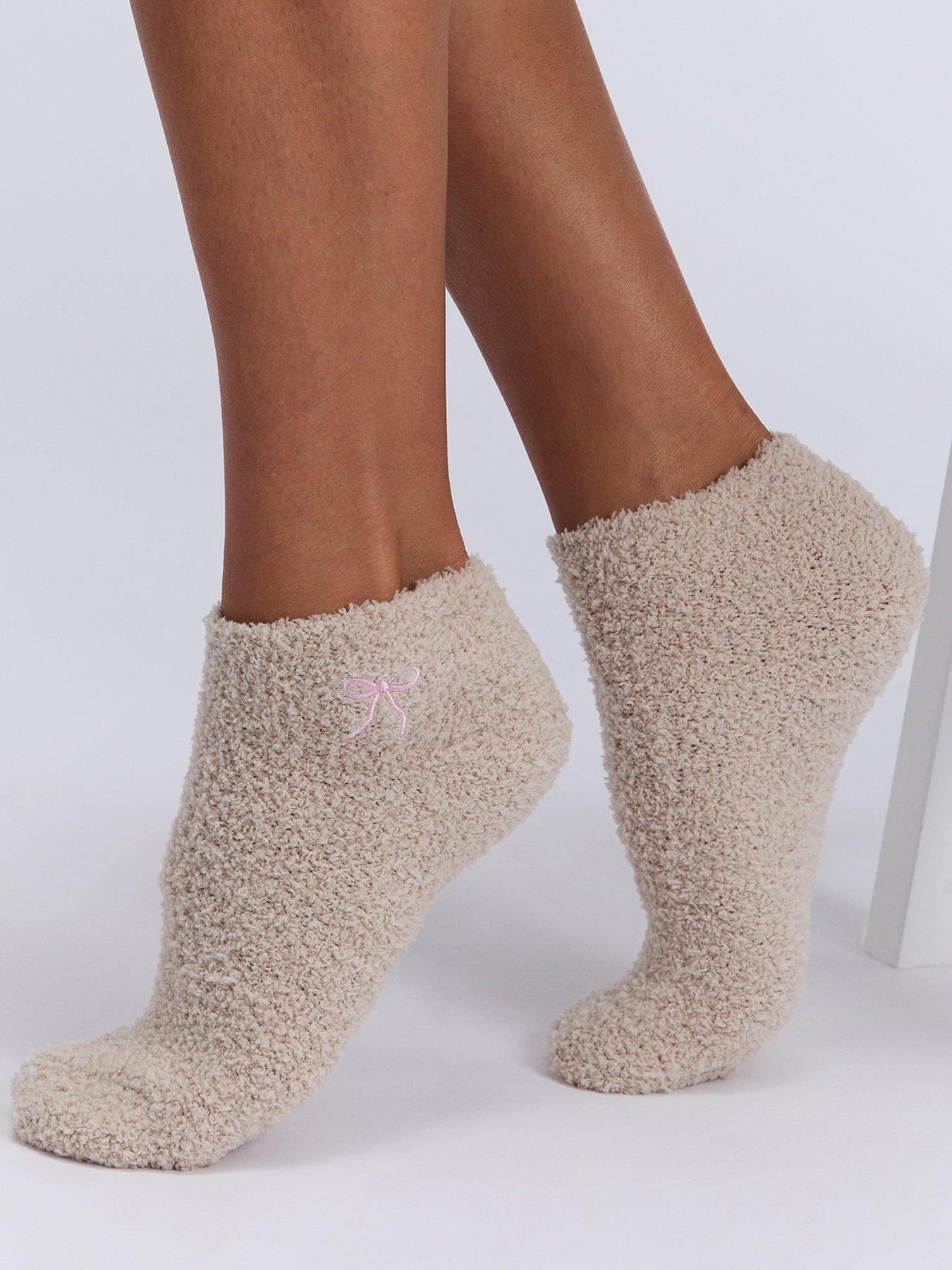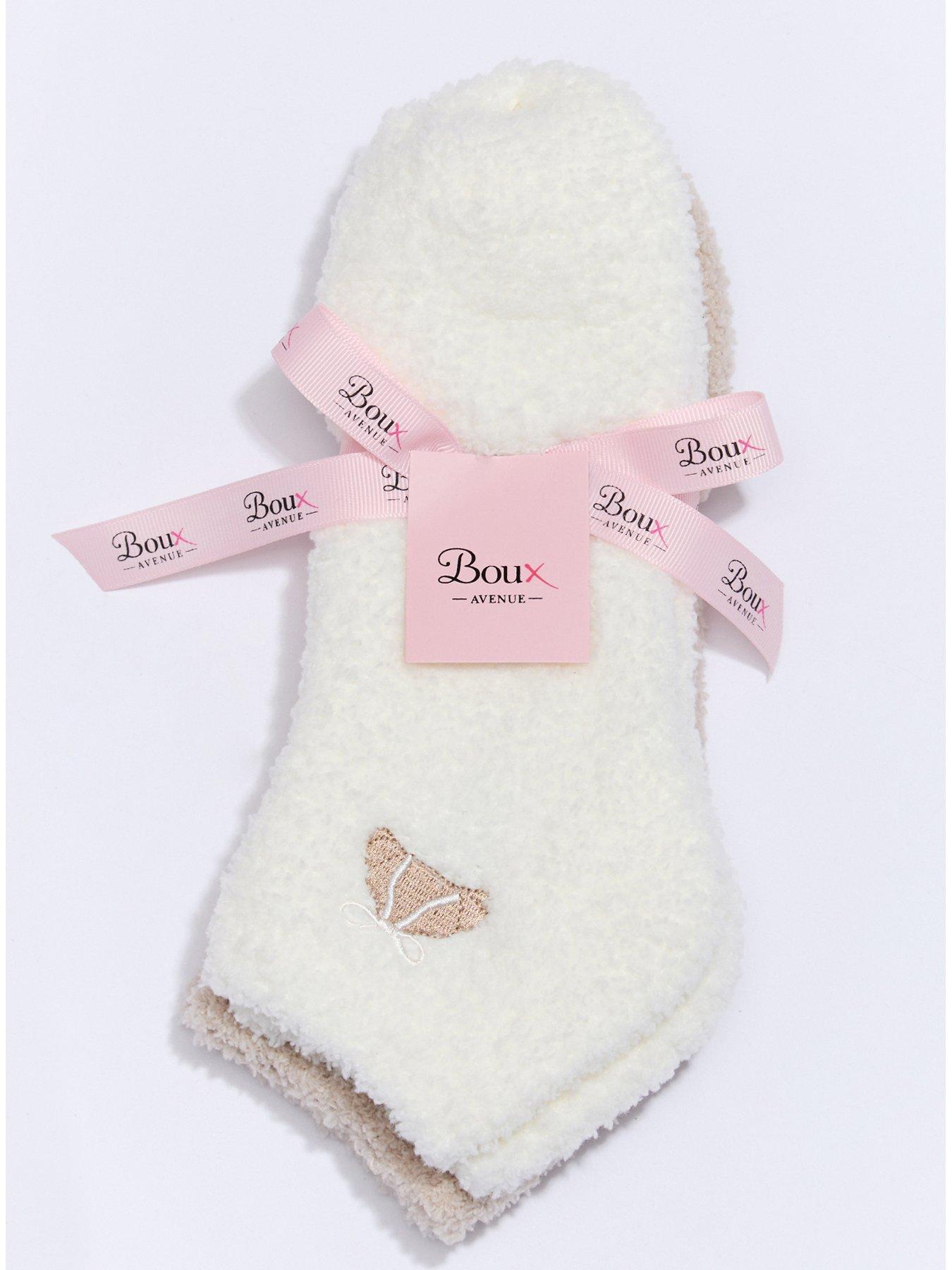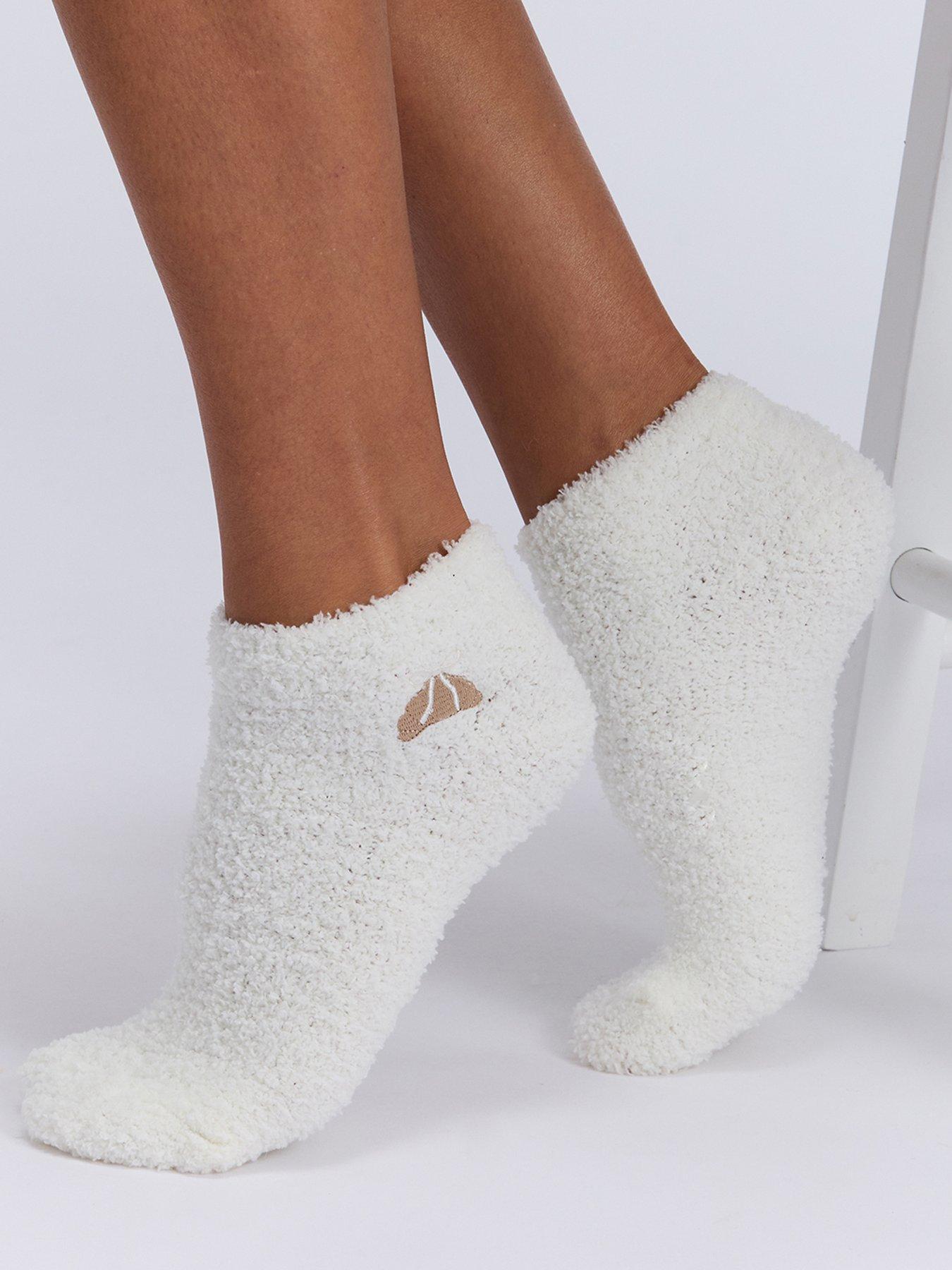 Boux Avenue Croissant & Bow Fluffy Trainer Socks 2 PackSize & Fit