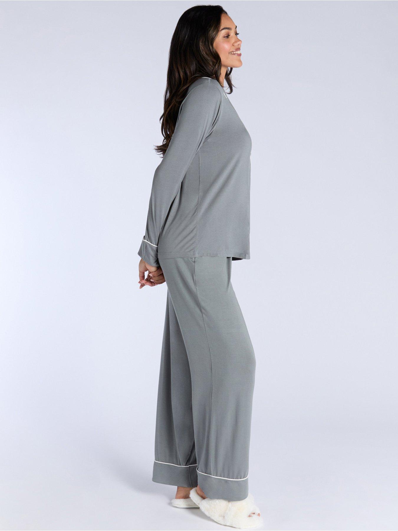 Boux Avenue Modal Long Sleeve Revere & Pant Set - KhakiIndulge in luxury with our piping short pyjama set, crafted from extremely soft modal material for ultimate comfort!