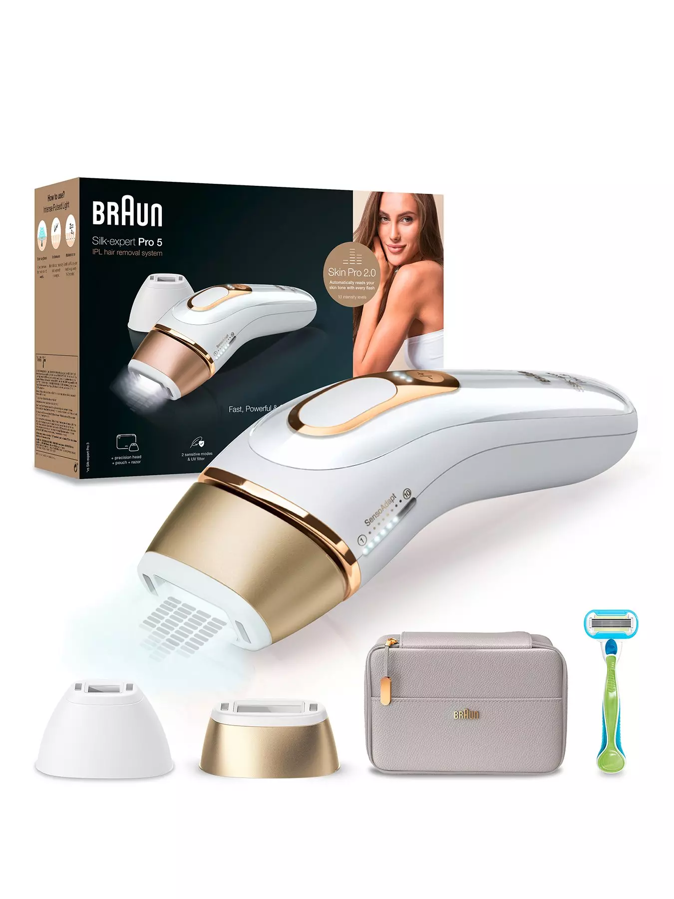 BraunIPL Silk-Expert Pro 5, At Home Hair Removal Device with Pouch PL5124 - White/Gold