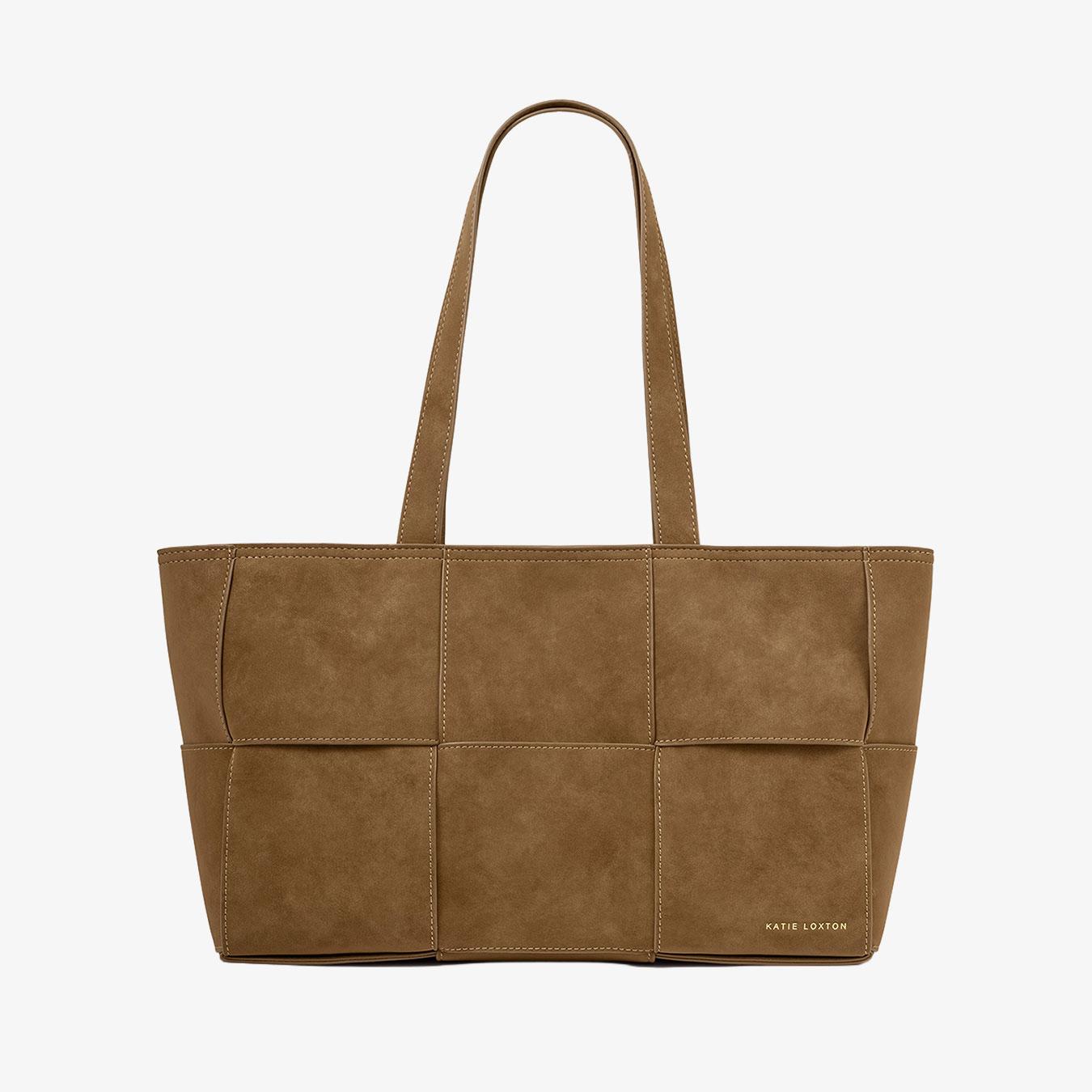 Dark Brown Faux Leather Mini Triple Compartment Tote Bag
