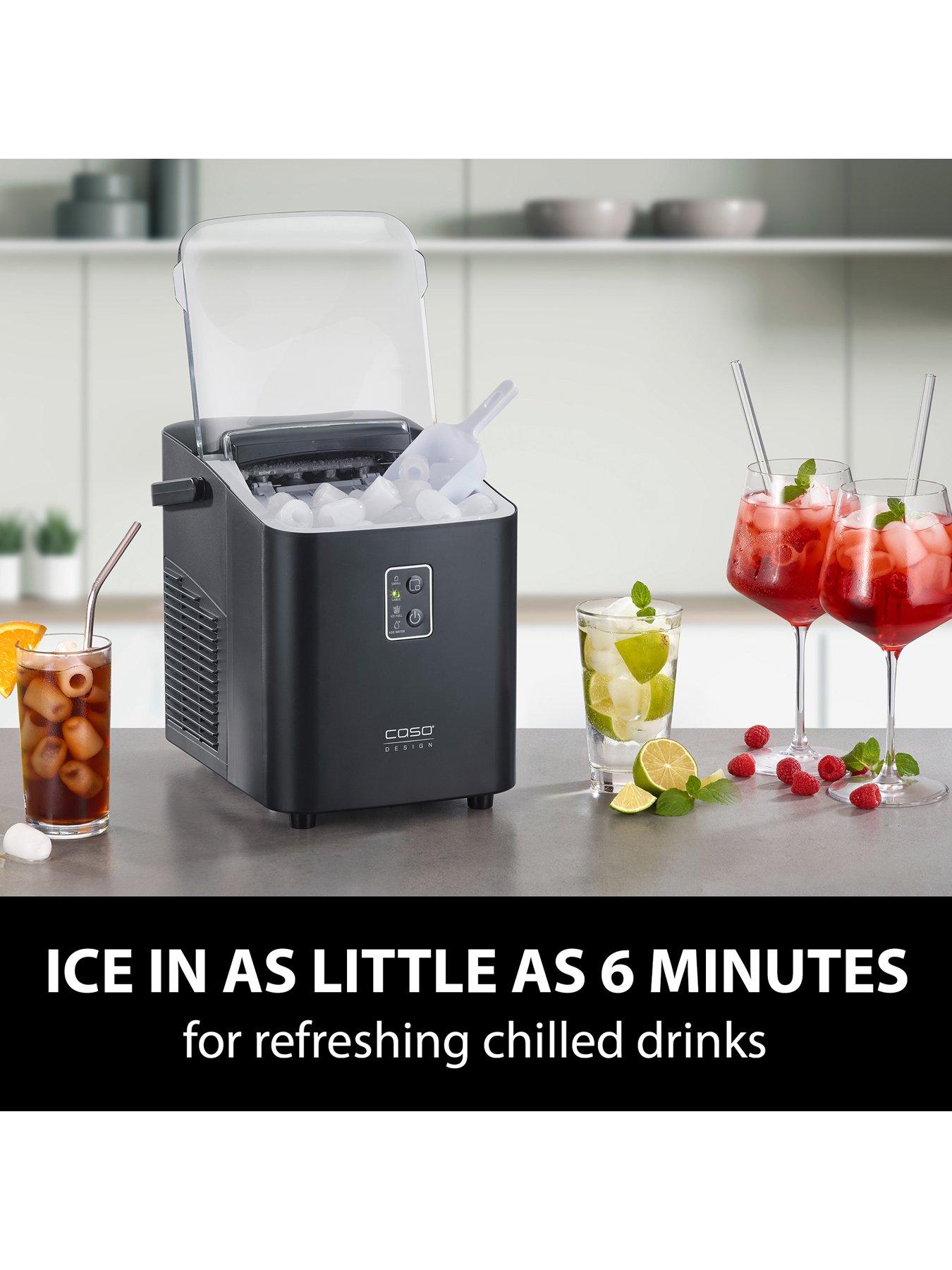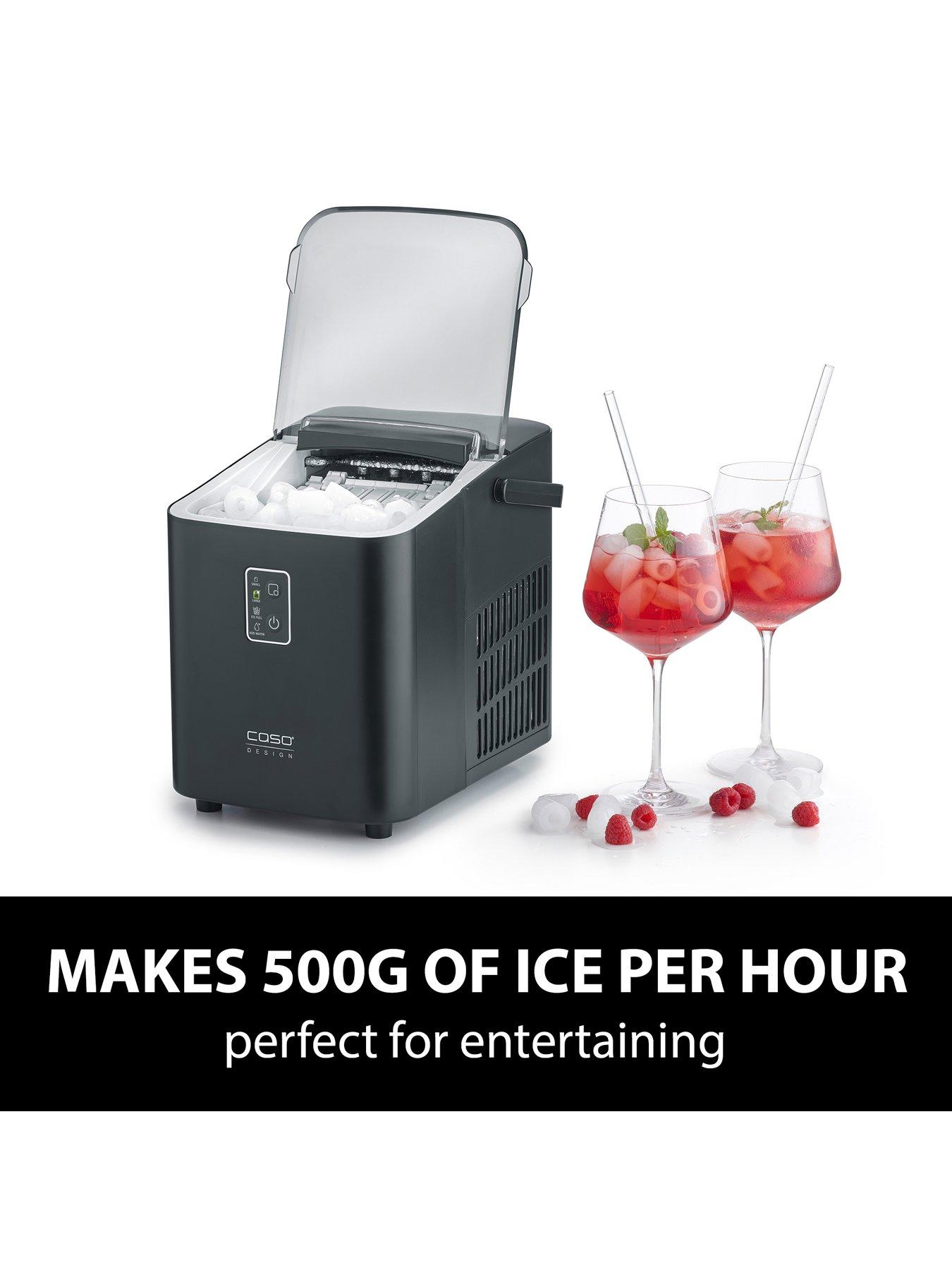 Caso Caso Design Ice Chef Compact Ice Cube MakerIntroducing the CASO Design IceChef Compact, a sleek and efficient ice cube maker that delivers ice on demand. With powerful yet quiet compressor technology, it operates at just 42dB and offers two ice cube sizes, producing fresh ice in as little as 6 minutes. Capable of making up to 500g of ice per hour or 12kg in 24 hours, it's perfect for entertaining or everyday use. The 1L water tank, viewing window, and alert display ensure seamless operation, while the self-cleaning function and removable ice cube tray add convenience. The modern matte black design and carrying handle make it a stylish and practical addition to any home.