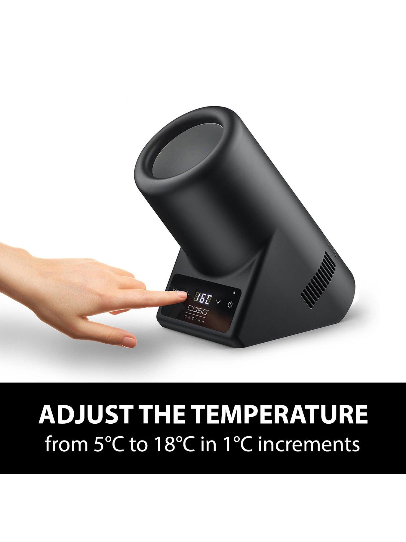 CASO Design VinoCase Tabletop Wine Cooler - keeps your wine at the perfect temperature for maximum enjoyment.The CASO Design VinoCase is a modern table-top wine cooler designed to maintain the temperature of chilled bottles of red or white wine, champagne, sparkling wine and even soft drinks. The temperature is electronically adjustable from 5 to 18°C in 1°C increments, with a simple LED display and sensor touch controls for ultimate ease of use.The CASO Design VinoCase Wine Cooler's quiet operation and high-quality, elegant matt black housing make a perfect statement for your table or kitchen countertop. Simply plug in and go - perfect for getting the best from your wine, as well as hosting dinner parties with friends and family. It can accommodate bottles with a diameter up to 9cm whilst still maintaining a compact design for space-saving storage.