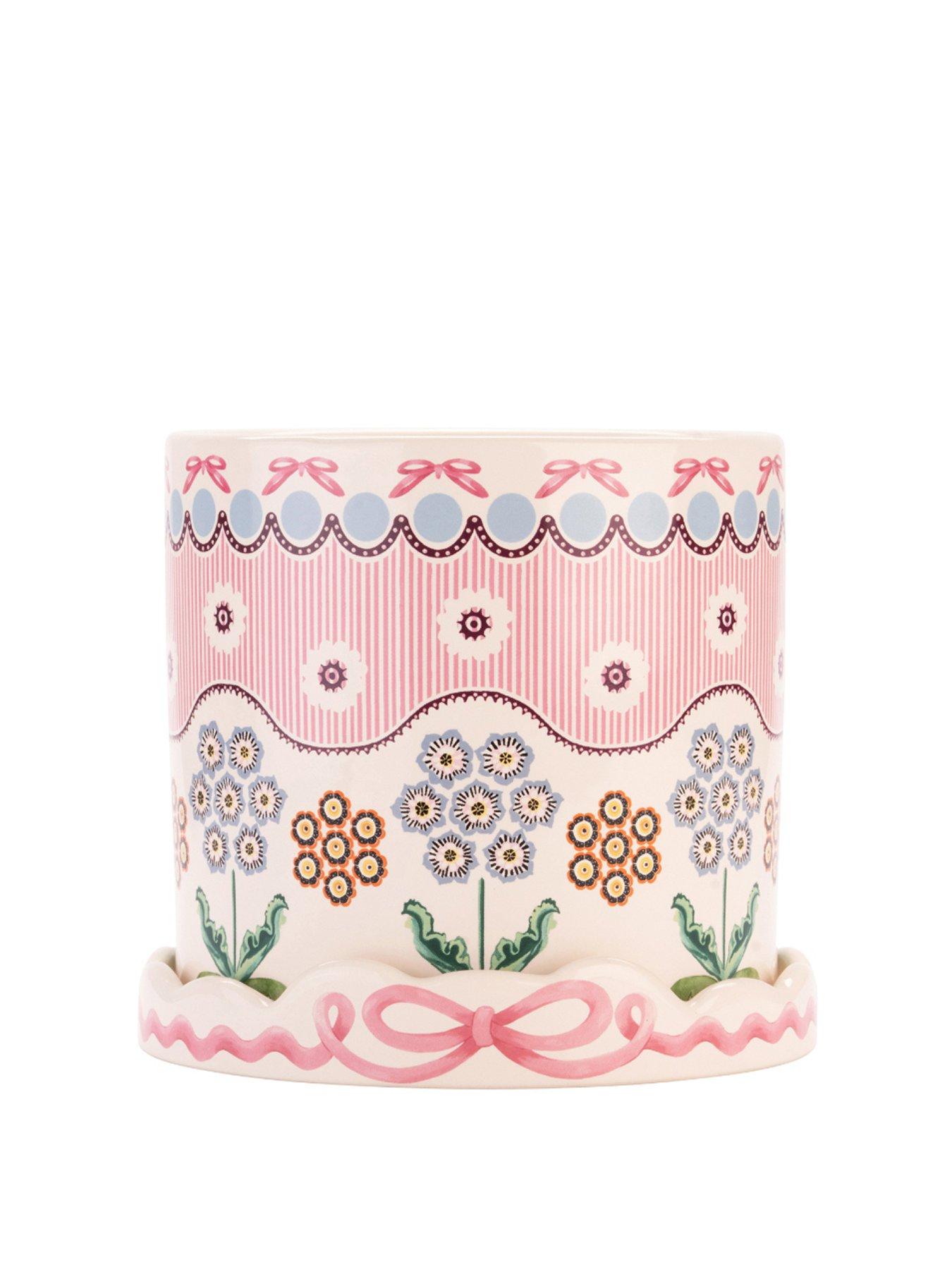 Cath Kidston Ck Spitalfields Silk Plantpot With TrayBring a touch of floral charm to your home with this Plant Pot and Tray set. Featuring drainage holes and a matching tray, it?s boxed and ready to gift. The primrose repeat design and scalloped border make it a true decorative delight.
