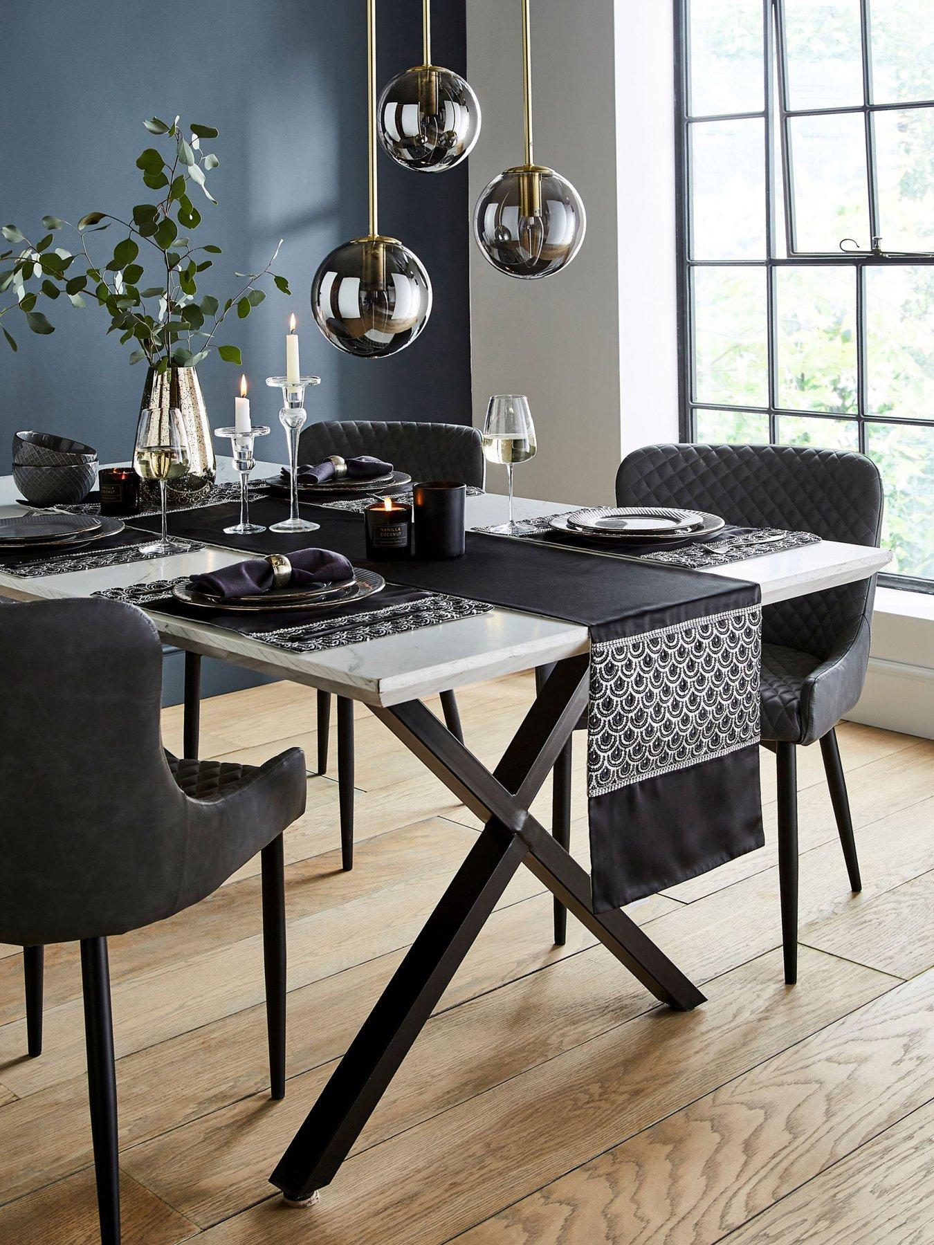 Catherine Lansfield Deco Sequin Table RunnerElevate your home's ambiance and create a space that sparkles with timeless elegance. Inspired by the opulence of the Art Deco era, these stunning runner showcase a dazzling array of sequins in a stylish arch pattern.