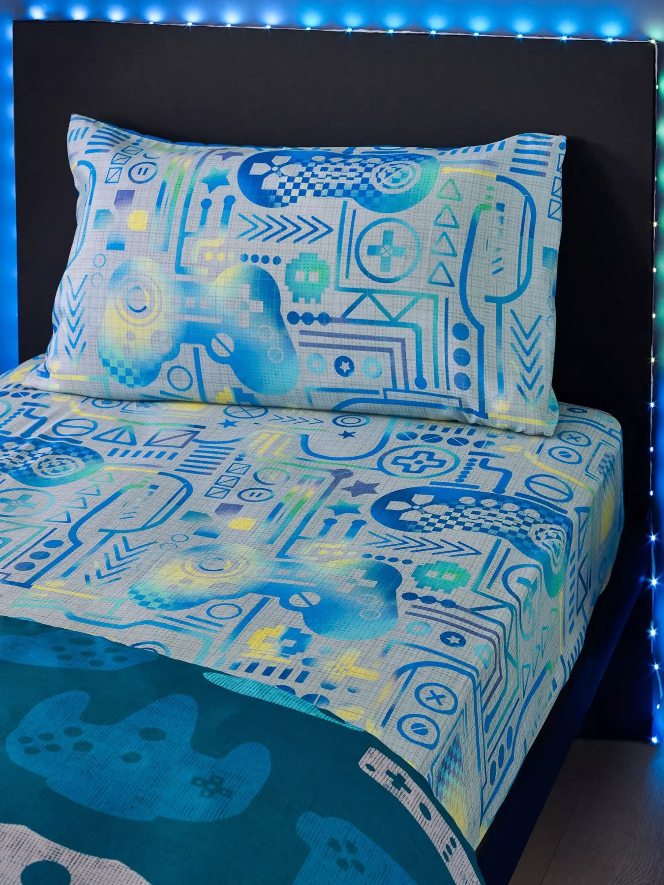 Catherine Lansfield is renowned for style and quality - designed and developed in Great Britain. Level up your child's bedroom with our vibrant gaming-themed sheeting, featuring bold graphics of controllers and consoles on a cool grey background. This playful design ignites the imagination of young gamers, creating an exciting atmosphere. Easy care and quick to dry, this microfibres set is a time-saving and hassle-free bedding option all year round.- Depth: 10 MM
