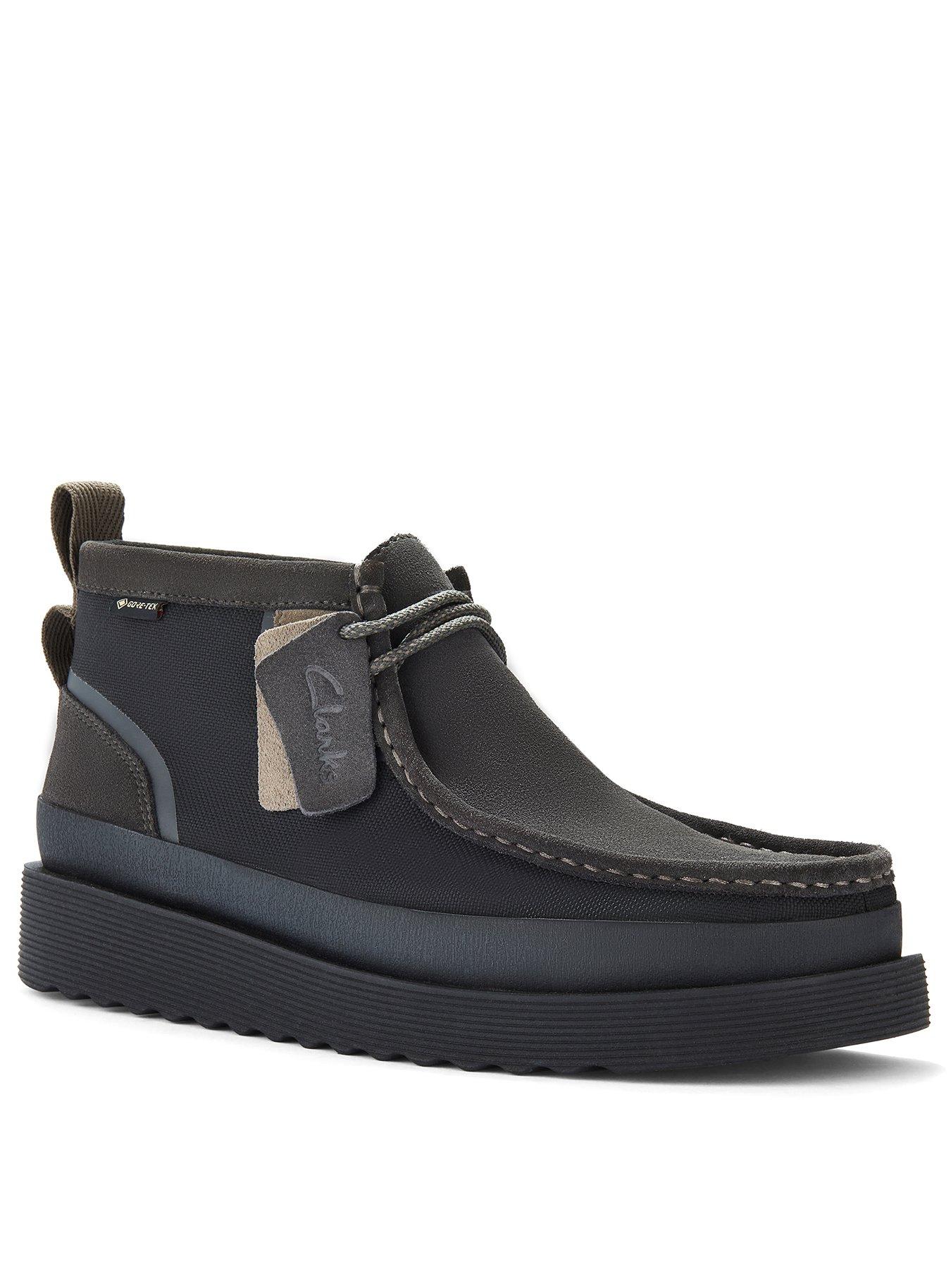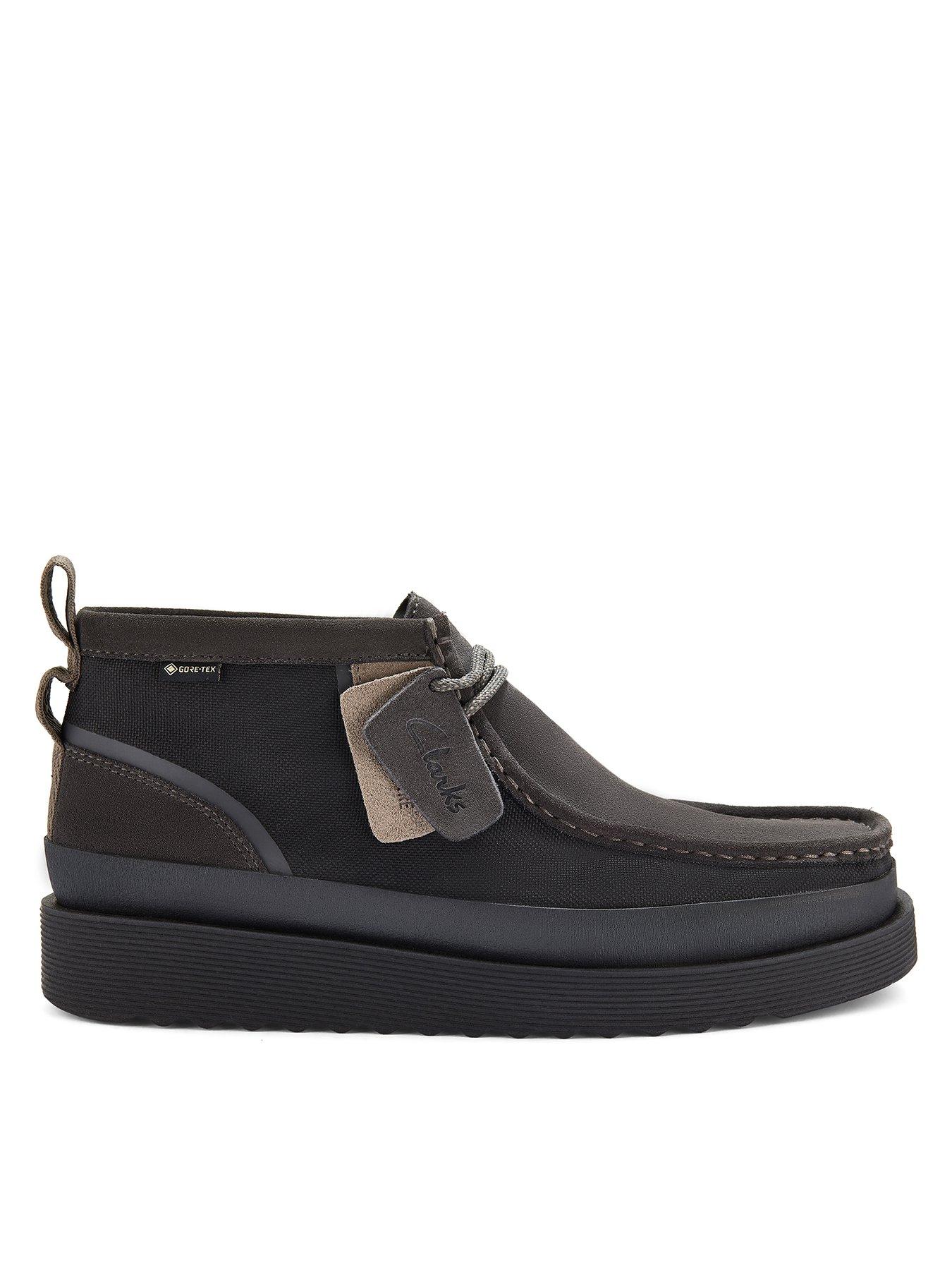 Clarks Wallabee Ftrgtx Hiker Boots-blackWallabee FTR GTX combines the iconic Clarks Originals Wallabee toe shape with modern enhancements for ultimate comfort and performance. Crafted from a blend of mesh and suede, it's complete with GORE-TEX waterproofing to lock out moisture. Underfoot, the C360 EVA sole and removable Contour Cushion footbed deliver long-lasting comfort, perfectly uniting style and functionality.- Breathable black combi mesh and suede upper - Removable Contour Cushion footbed offers long-lasting underfoot comfort - Athletic-inspired flecked lace lends a secure fit - Heel pull aids easy foot entry - GORE-TEX lining guarantees waterproof protection - C360 EVA sole delivers lightweight cushioning and flexibility