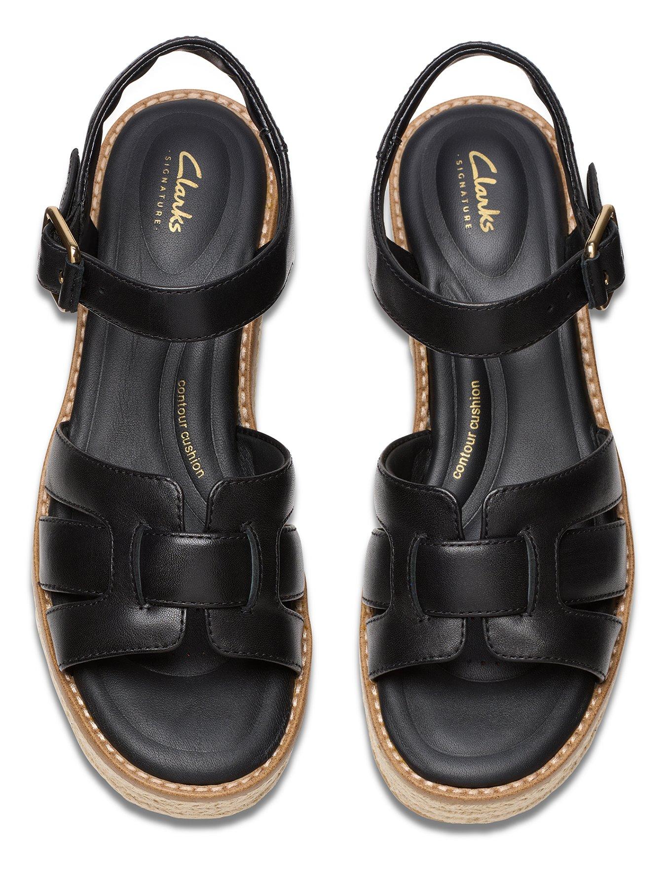 Clarks Coledale Strap Leather Platform Wedge Heel - BlackOur ultra-wearable wedge Coledale Strap melds a lightweight profile with sleek black leather uppers to wrap the foot perfectly. Featuring a platform wedge heel for effortless elevation, it comes together with our signature Contour Cushion footbed that keeps comfort at its core - while rope wrap and stitch details create a modern, crafted look.- Soft rich black leather upper for a premium aesthetic - Adjustable ankle strap and subtle hidden elastic offer a secure, personalised fit - Contour Cushion footbed delivers unrivalled comfort - Heel height: 65mm