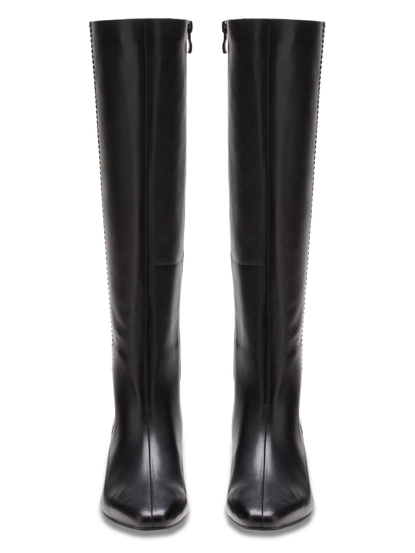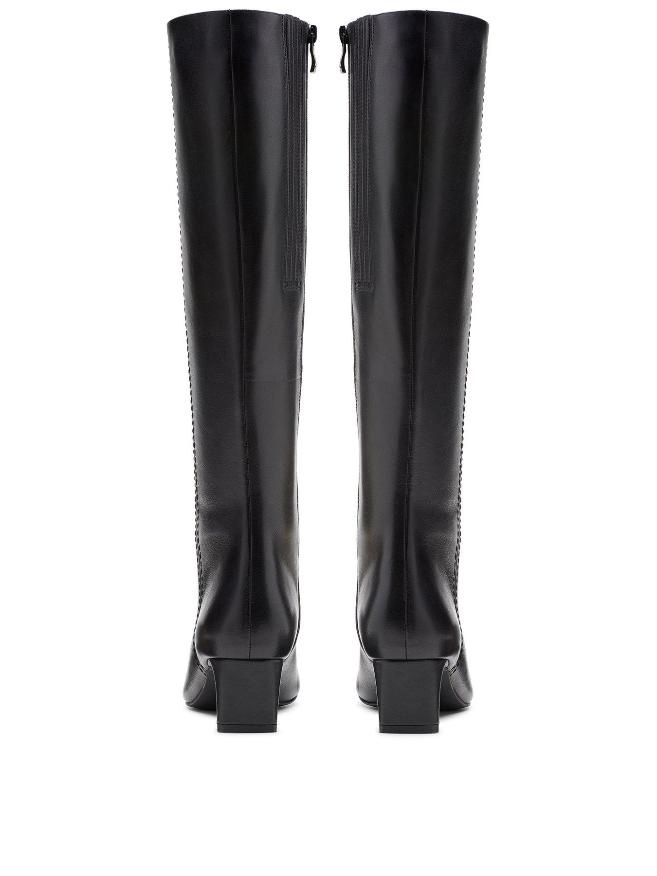 Clarks Edina Tall Leather Knee Boots - BlackHeeled knee high boot Edina Tall lands in premium leathers to add a little polish to every look. Sleek and stylish with its chipped toe shape and easy-wear low heel, it's topped with considered stitching details for an authentic, crafted look. And, making your comfort a top priority, it comes together with a super-soft Contour Cushion footbed that absorbs the impact of movement - from the morning commute to drinks after work!- Premium black leather upper - Hidden elastic gussets offer added stretch and an improved fit - Breathable, leather-lined Contour Cushion sock offers long-lasting support - Subtle side zip for easy on/off - Lightweight, flexible rubber outsole - Heel height: 50mm