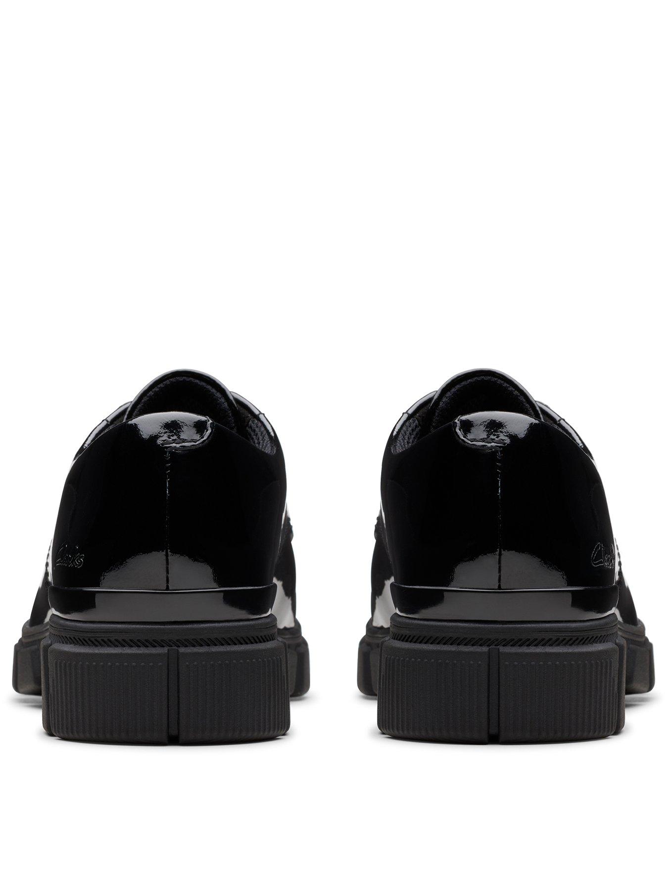 Clarks Evyn Lace K.School days stay stylish in Evyn Lace, our no-brainer lace-up silhouette that's complete with an on-trend chunky sole. We've crafted this pair with high-shine leather uppers that are tough enough to take on the day with confidence. And busy feet stay fresh for lunchtime, lessons and everything in between thanks to a little help from clever odour control technology in the lining.- Durable patent leather upper - Padded collar and tongue for added comfort and support - Microban odour control lining keeps shoes feeling fresh - Lightweight, flex-grooved TR (thermoplastic rubber) sole with a TPER filler boasts a statement, outsized look and offers steady grip