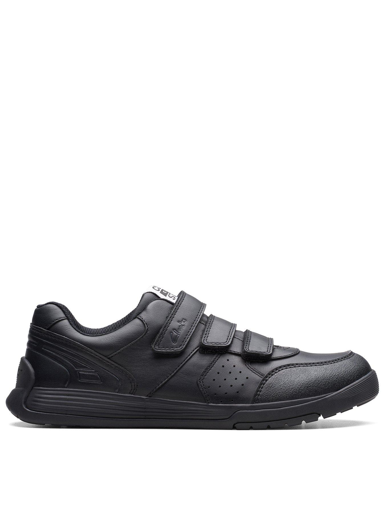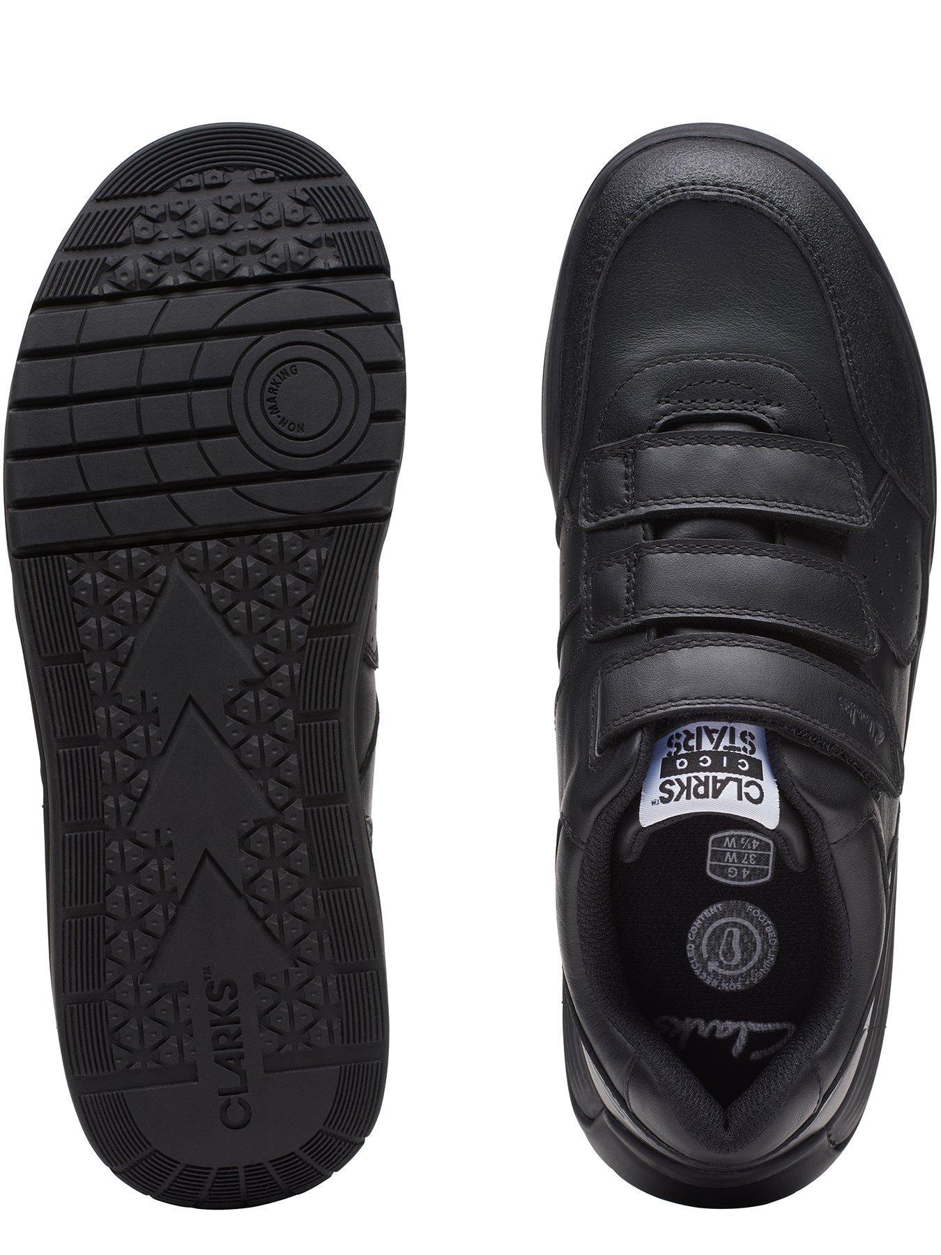 Clarks Youth Cicastar Orb Strap School ShoeKids take on every adventure with ease thanks to sneaker CicaStarbOrb. Lightweight and durable, this silhouette uses an antibacterial lining for a fresh feeling. It's great at keeping up with busy little ones too, thanks to flex grooves and pivot points in the sole that aid with flexible movement. Playtime's about to get even more fun!- Durable, washable black leather upper with areas of perforation to boost breathability - Upper is reinforced with additional layers in areas of abrasion - Padded tongue and collar for added comfort and support - Antibacterial lining keeps shoes feeling fresh - Flex grooves and pivot points to the rubber sole aid with flexible, uninhibited movement