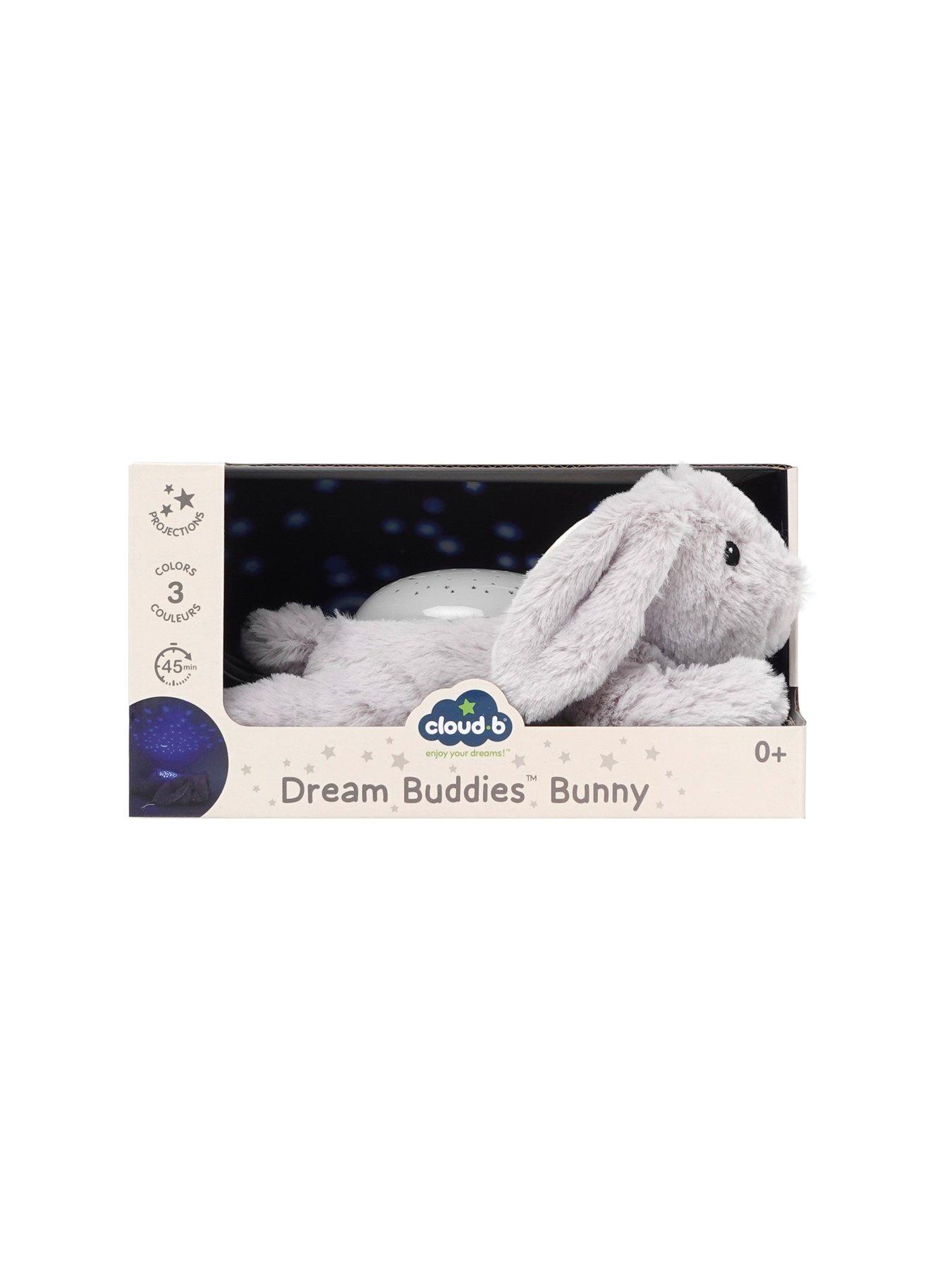 cloud.b Dream Buddies - Benny- Bunny Nightlight ProjecterDream Buddies are compact, ultra-plush pals that help ease children's fear of the dark by projecting a starry night sky onto ceilings and walls. From blue to green to amber, the slowly morphing colours will mesmerise your little ones and lull them into deep, sweet sleep. It is also possible to cycle through all three colours automatically. The nightlight projects the stars of the Big Dipper constellation. Dream Buddies are the perfect calming companions that your tiny tots can tote with them wherever they go. The Dream Buddies are the perfect soothing companions that your little ones can take everywhere. With several characters to choose from, your kids can collect them all! The 45-minute timer lets your children fall asleep peacefully, but then ensures total darkness so they sleep through the night.