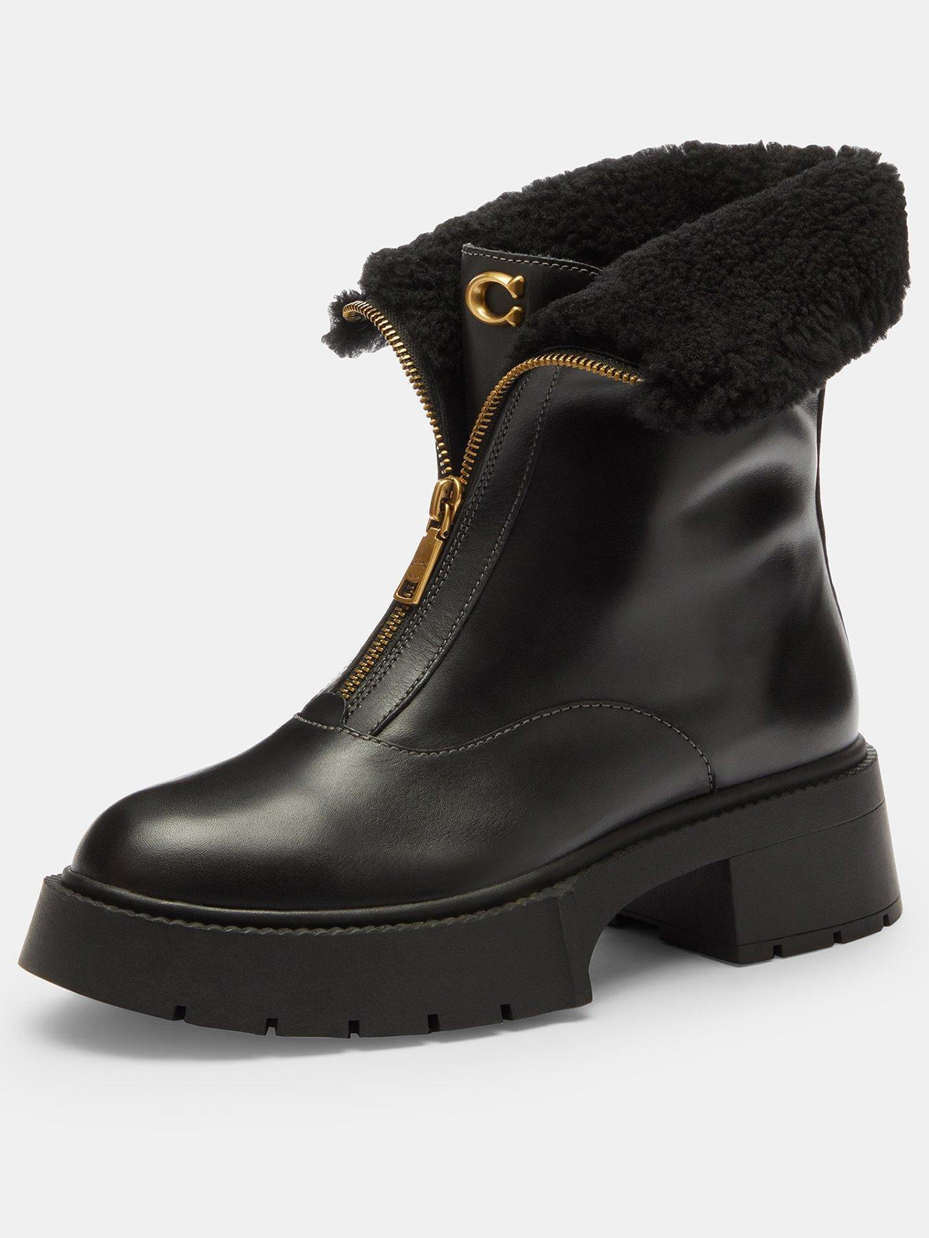 COACH Leah Platform Leather Shearling Zip BootieSize & Fit