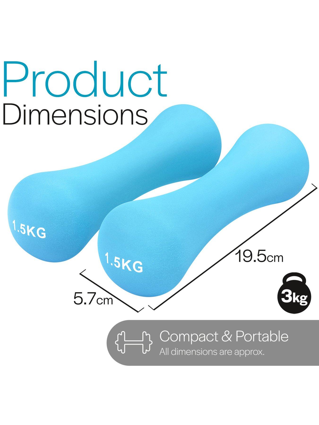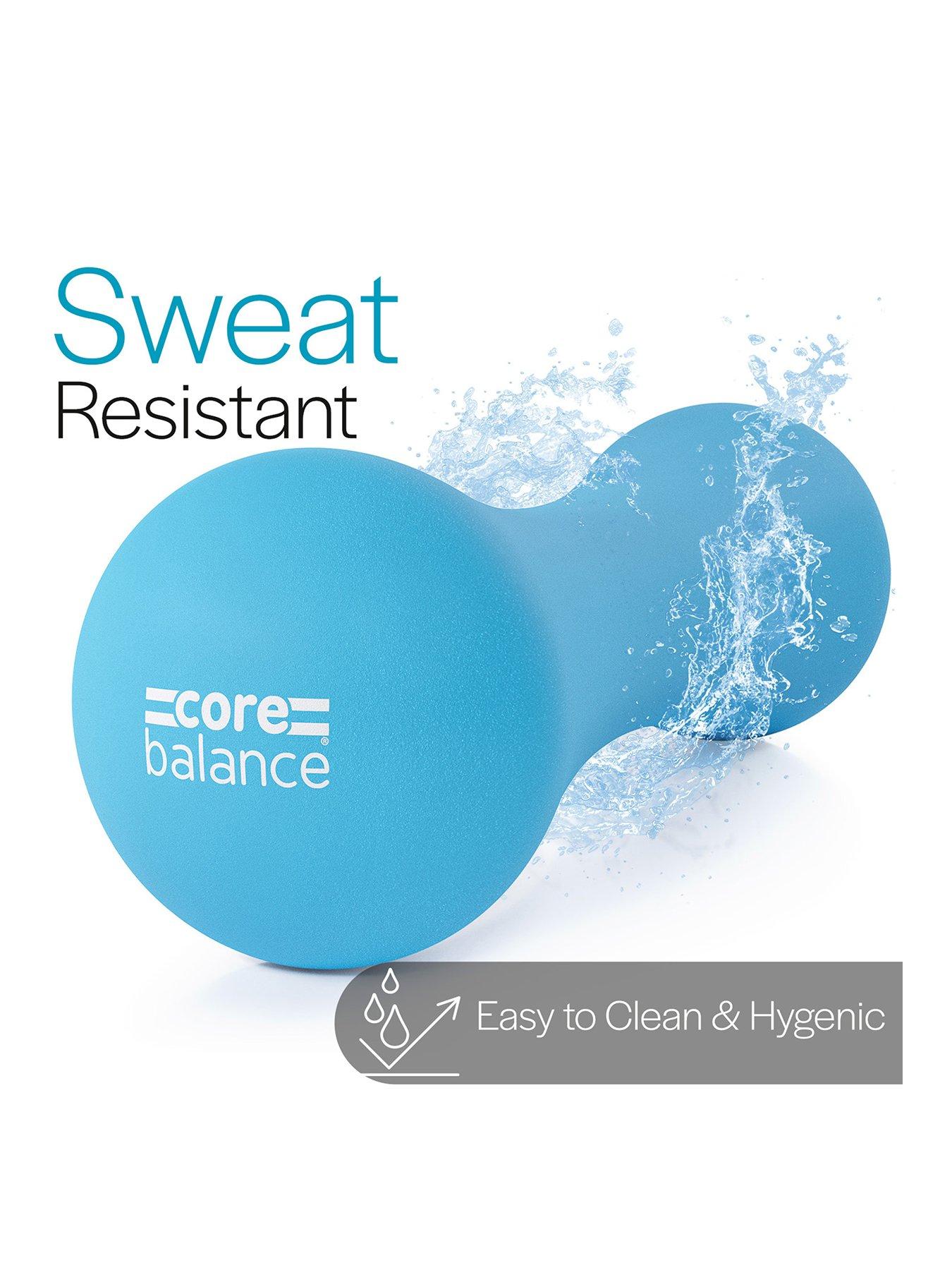 Core Balance Bone Neoprene Dumbbells (2 x 1.5kg)Add extra weight and resistance to your workout with a pair of 1.5kg Bone Neoprene Dumbbells from Core Balance. With a combined weight of 3kg, the dumbbells are lightweight to hold, making them great for toning your muscles. Plus, they reduce fatigue, so you can do more reps and supercharge your workout.Perfect for Cardio Workouts Perform bicep curls and other dumbbell exercises to tone and sculpt your muscles. Or use the dumbbells to add extra resistance to exercises and intensify your workout. Perfect for running, squats, lunges, and more. Bone-Shaped for a Comfy Grip Dumbbells are bone-shaped, allowing you to easily wrap your entire palm around them without putting strain on your hands and fingers. Provides a firm, comfortable grip, no matter how long you're working out for. Soft-Grip Neoprene Coating With their soft-grip neoprene coating, the dumbbells are comfier to grip than cast-iron or rubber-coated dumbbells. Plus, neoprene retains its grip when sweaty, making them great for high-intensity workouts. Strong Cast-Iron Core With their heavy-duty cast-iron core, there's no need to worry about the dumbbells breaking if you drop them. Extra-tough compared to concrete or cement-filled dumbbells for optimal strength and durability. Hygienic & Easy to Clean Because the dumbbells are neoprene-coated, they're free from Phthalates and chemicals, making them kind to your hands. Plus, they're easy to clean. Simply wipe them with a damp cloth, then gently buff them dry.