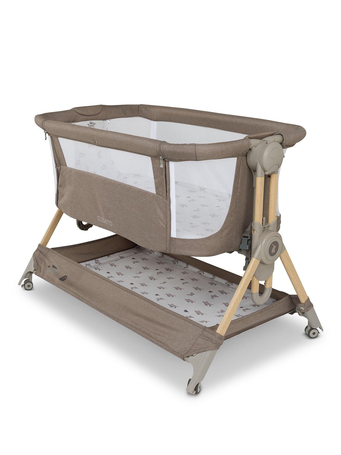 Cosatto Close to Me Folding Bedside Crib - LollopMeet your baby's new sleep sidekick, the clever crib that goes from home to away in a pop. With adjustable heights, breathable mesh sides, wheels for easy roaming and a cosy padded mattress, it's the ultimate snooze spot from birth to 9kg.Mini naps and early bonding: Suitable for overnight sleeping from birth until 9kg (or an infant who cannot sit, roll over or push themselves up, whichever comes first). Speedy set-up: Pops up in seconds for stress-free assembly at home or on the go. Safety and simplicity side by side: This crib attaches to your bed for peace of mind. It includes bedside attachment straps and a drop-down side for easy feeding and comforting. Effortless everyday: Featuring 5 adjustable height positions, smooth-glide wheels with brakes for easy room-to-room movement, a spacious storage basket for all your bits and bobs and a handy freestanding position when folded. Travel-ready: Close to Me folding bedside crib is lightweight with a compact fold. It features a cosy padded mattress, handy travel bag and mosquito net. Features Quick pop-up assembly - fuss-free setup in seconds 5 adjustable height positions - for the perfect bedside fit Breathable mesh sides - for airflow and easy visibility Simple drop-down side - reach and comfort your baby with ease - intended for use in bedside sleeper mode only Comfortable padded mattress - for cosy snoozes Compact, easy fold - ideal for home or travel Smooth-glide wheels with brakes - move effortlessly from room to room Large storage basket - handy space for baby essentials Use as a standalone or as a bedside crib - versatile for every set-up Complete with travel bag, mosquito net and bedside attachment straps 4-year guarantee - for extra peace of mind