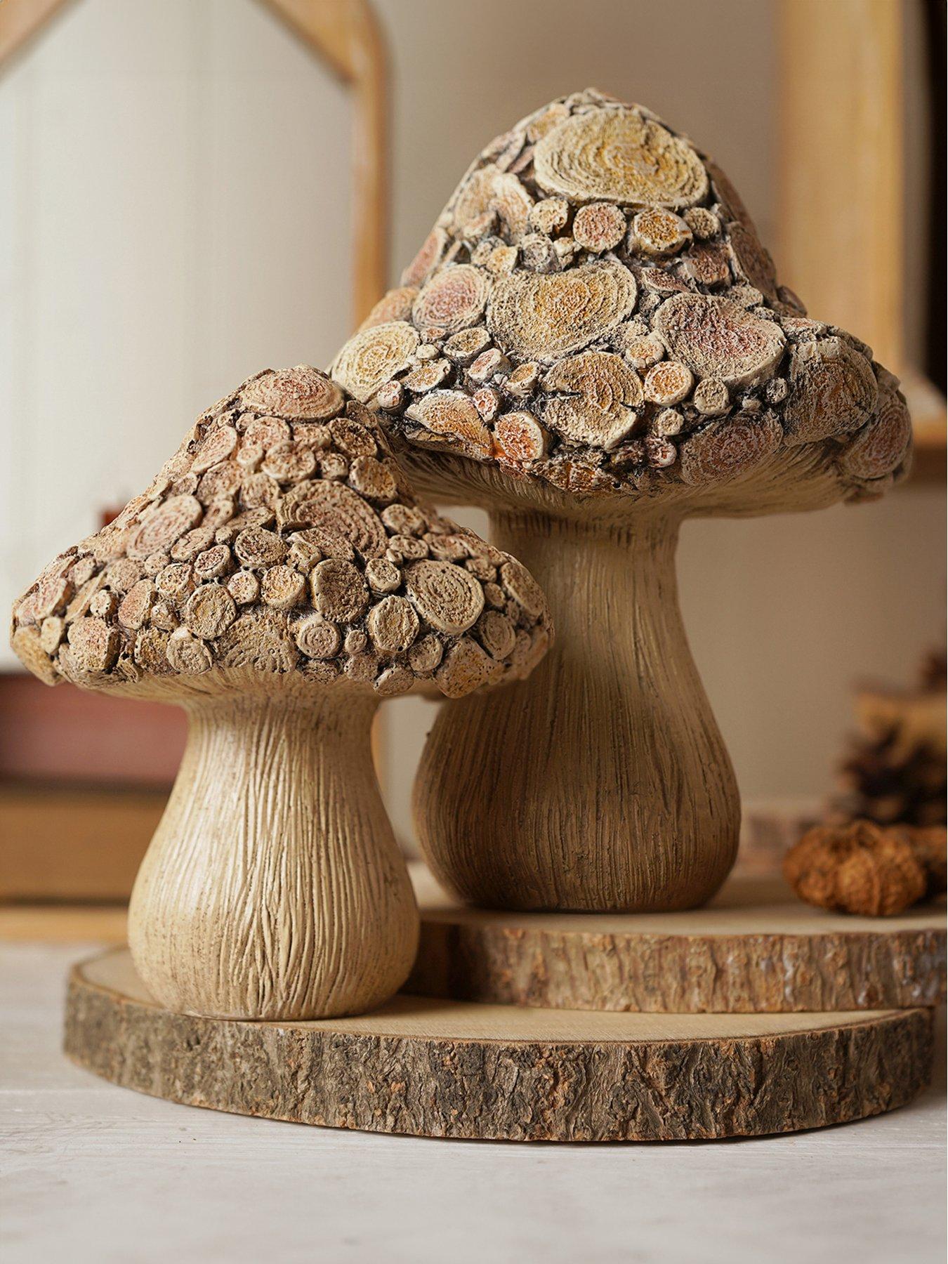 Country Living Wood Effect Mushroom with Log - 20cmsBring a touch of woodland charm to your home with the Country Living Wood Effect Mushroom, measuring 20cm. Crafted from durable resin, it captures the look of natural wood while offering long-lasting quality. Finished in a warm brown tone, the detailed mushroom design provides a realistic and rustic feel. Perfect for enhancing mantels, shelves, or seasonal displays, it's a versatile piece for anyone who loves nature-inspired decor.