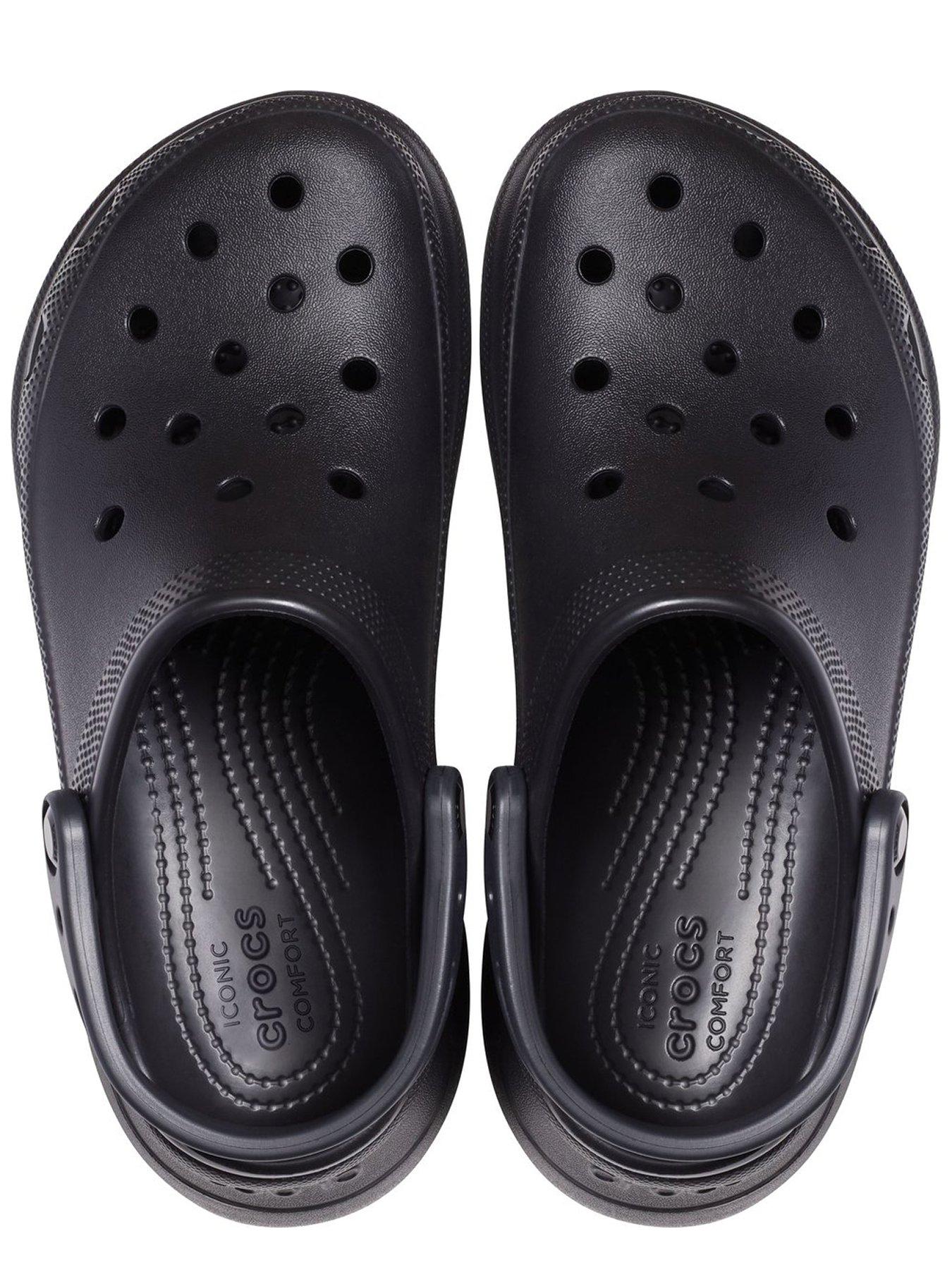 Crocs Bae Clog Shoe - BlackThe Classic Clog has been reimagined with an extra dose of height, attitude, and style. Introducing the Crocs Classic Bae, featuring an ultra-contoured outsole that supports the upper you know and love - but there's more. The new customizable backstrap also holds Jibbitz charms, so you can personalize your look even more. When you're feeling a little extra, flaunt it fearlessly in the Crocs Classic Bae.