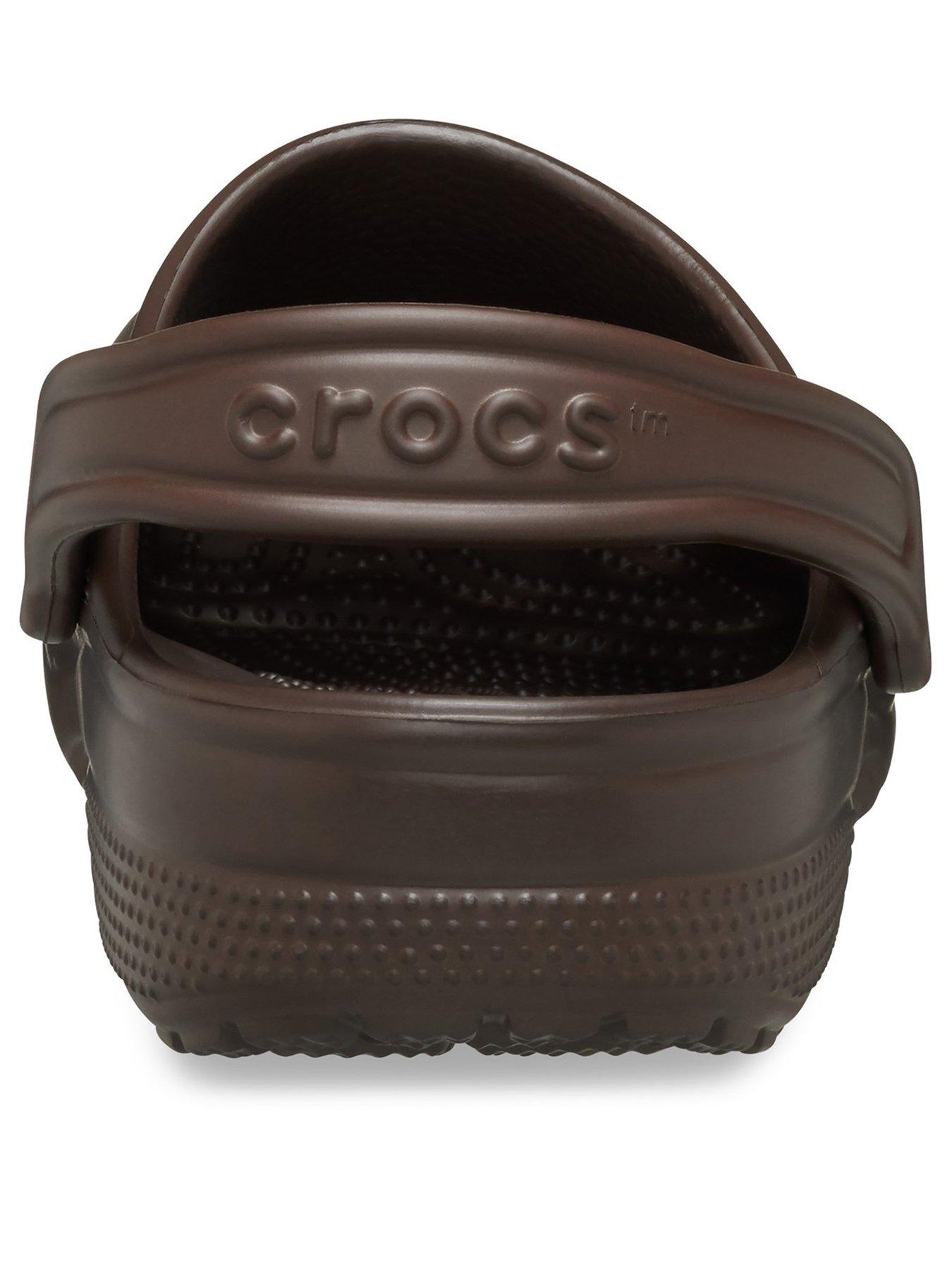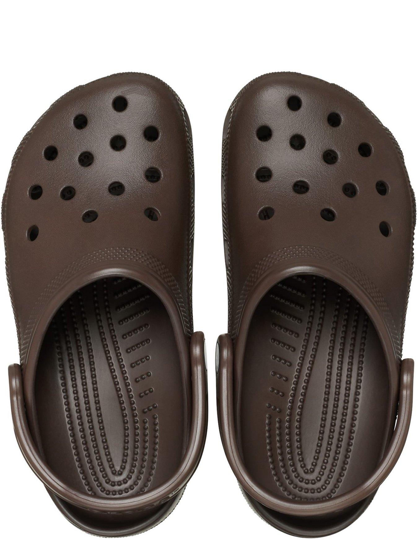 Crocs Classic Clog - BrownSlip into your favourite clog and enjoy a custom fit, water-friendly design and ventilated forefoot for breathability. The croslite footbed moulds to your foot for a custom fit with excellent arch support.