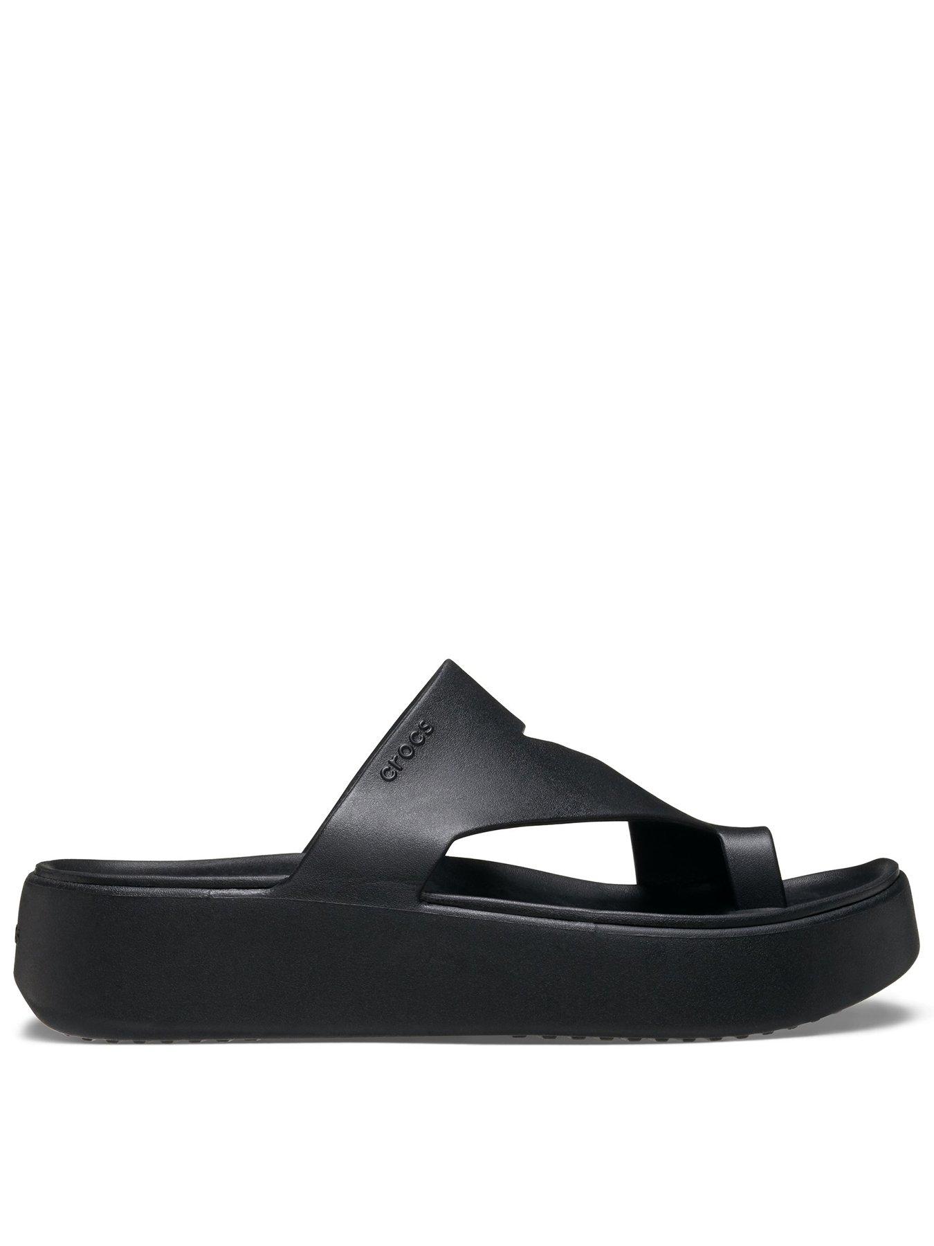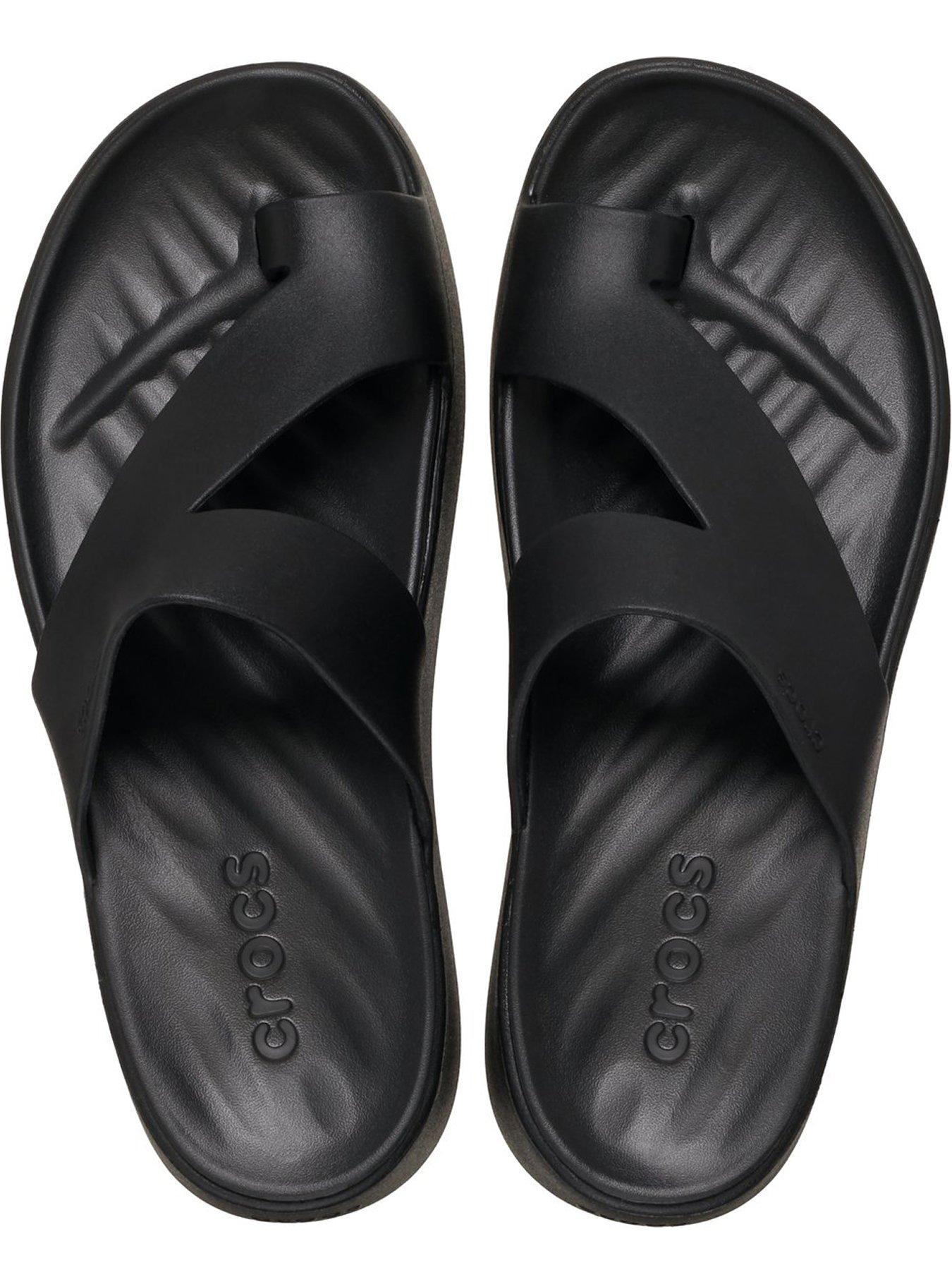 Crocs Getaway Platform Toe Loop Sandal - BlackThe Crocs Getaway Collection with new Free Feel Technology introduces our most seamless comfort innovation yet. The soft, flexible Free Feel Technology upper feels like nothing at all, floating on top of your foot and moving with you without restriction. With a variety of heights and stylish silhouettes, you will have a sandal for every occasion and all your getaways! Once you step in, you will never want to take them off.