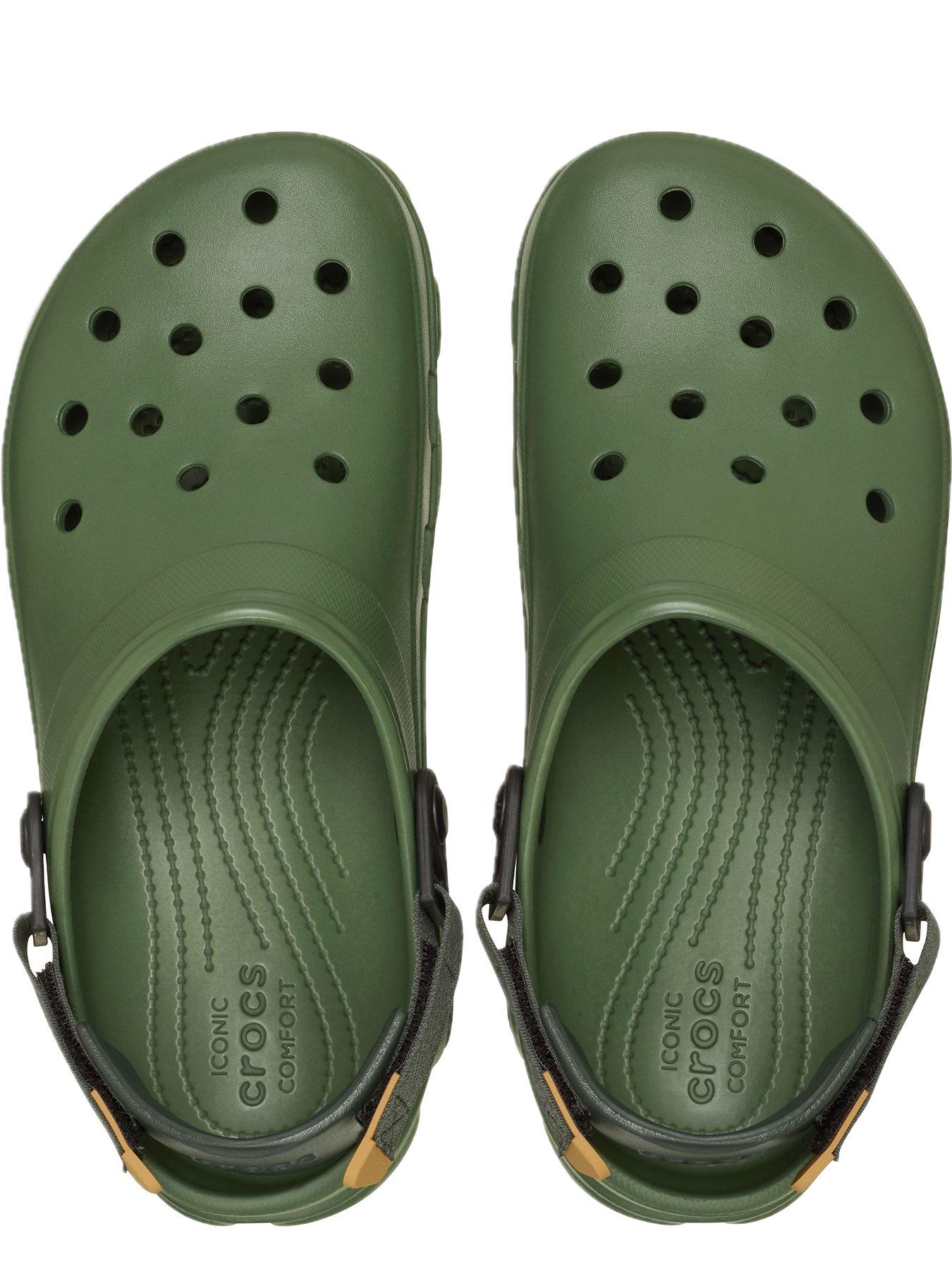Crocs Men's All Terrain Clog SandalTravel. Exploration. Adventures near and far. The Classic All-Terrain Clog is ready for it all, even in the harshest environments. With a more rugged outsole and an adjustable turbo strap, the ground beneath your feet has never felt more surmountable. Lightweight Croslite construction makes them a practical and packable choice for any outing. It's time to shift into all-wheel drive. Flip that strap back and go find your fun!