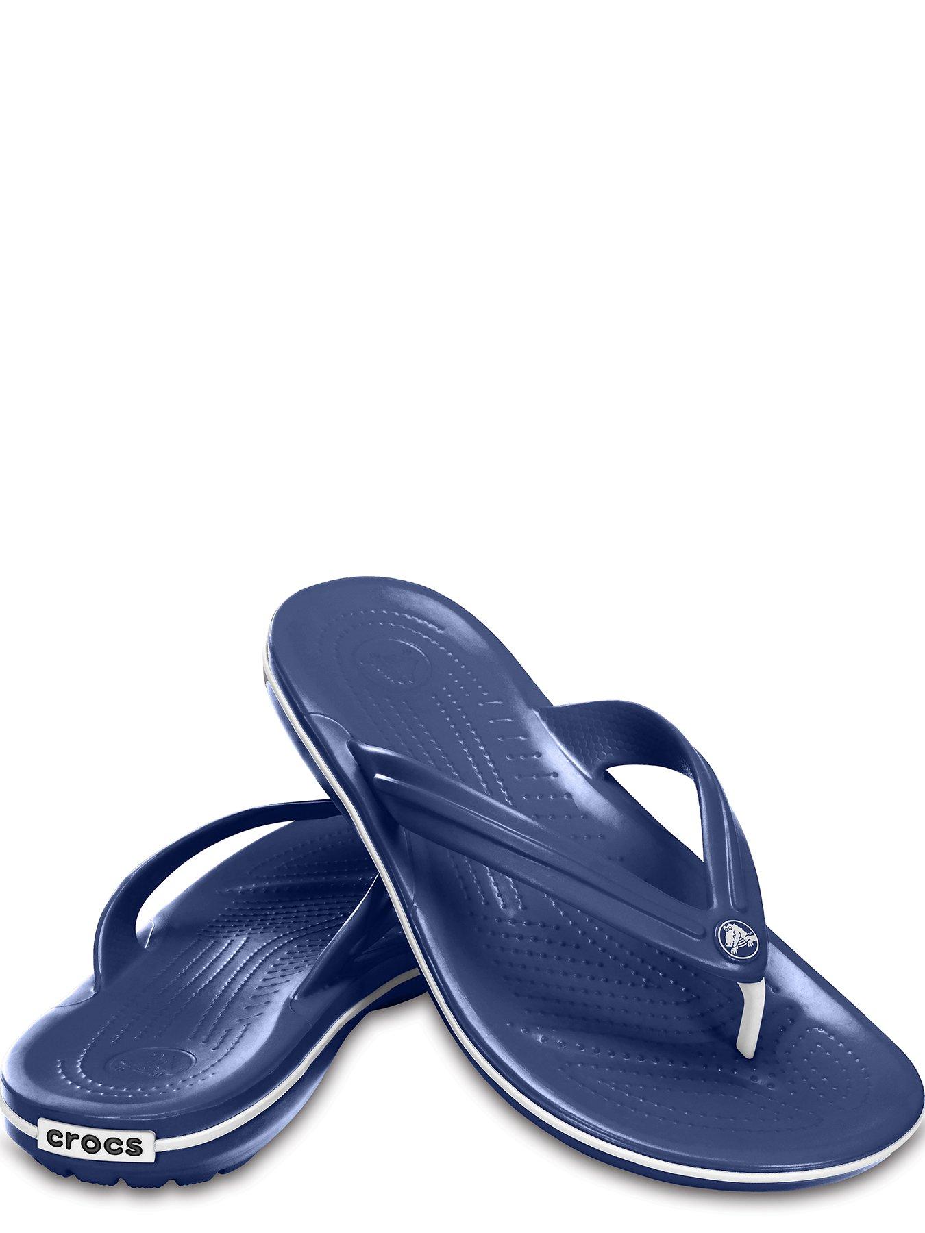Crocs Men's Classic Flip Flop - NavySporty and lightweight with the signature athletic stripe, the Crocband Flip is a colorful and incredibly comfortable warm-weather choice that pairs perfectly with shorts, slacks or swimwear. Constructed of easy-to-clean Croslite material, it's ready for the beach, garden or anywhere else you choose to get your summer on!