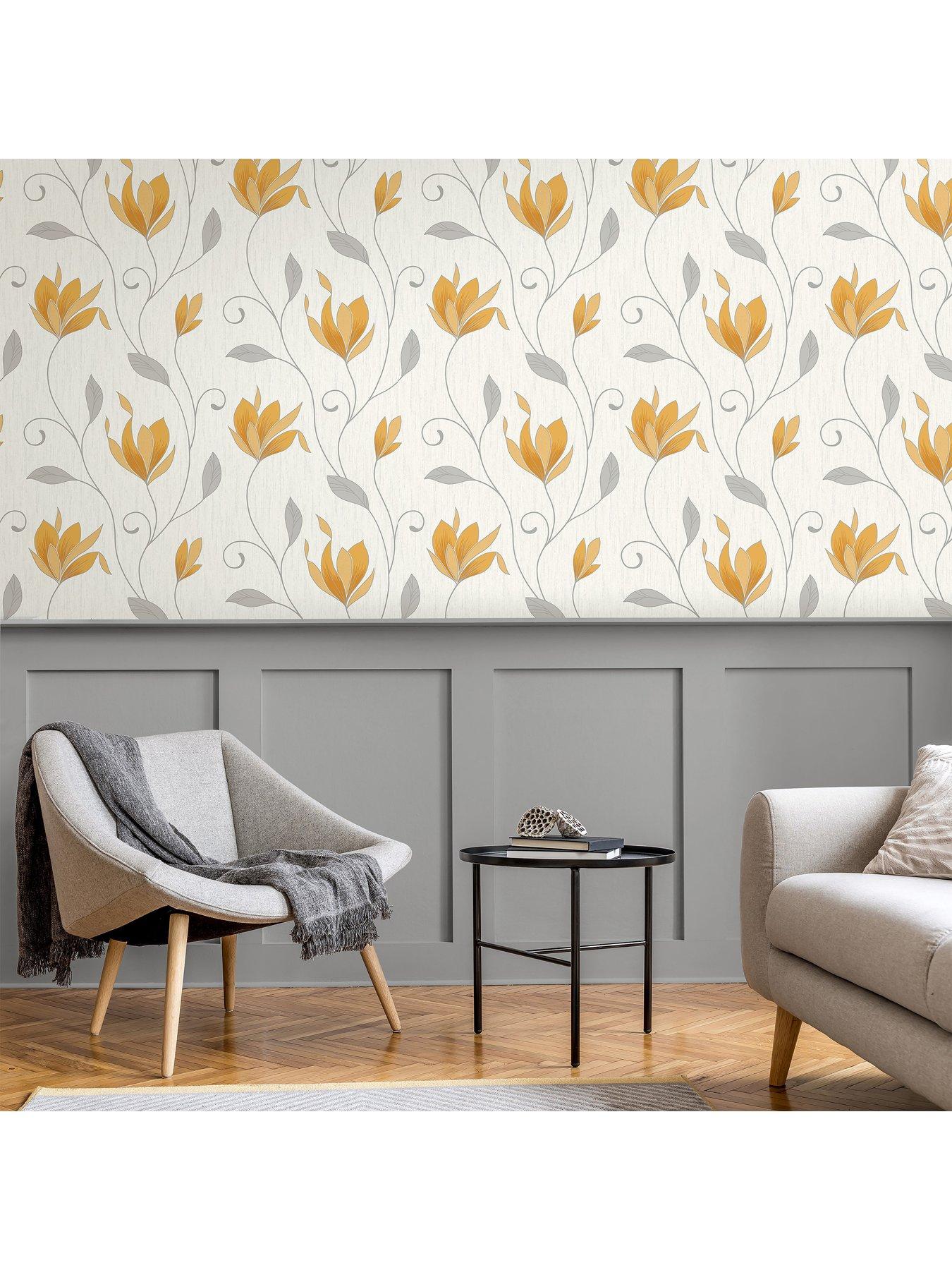 Crown Synergy Floral Sidewall WallpaperSynergy Floral by Crown is an elegant wallpaper that will elevate classic and contemporary spaces alike.The striking design sees floral trails running from top to bottom against a textured white backdrop. Shades of grey and yellow create a distinctive visual with plenty of versatility. Hang as part of a feature wall to grab the attention, on all four walls for create a consistent look, or frame a bold focal point to really impress.