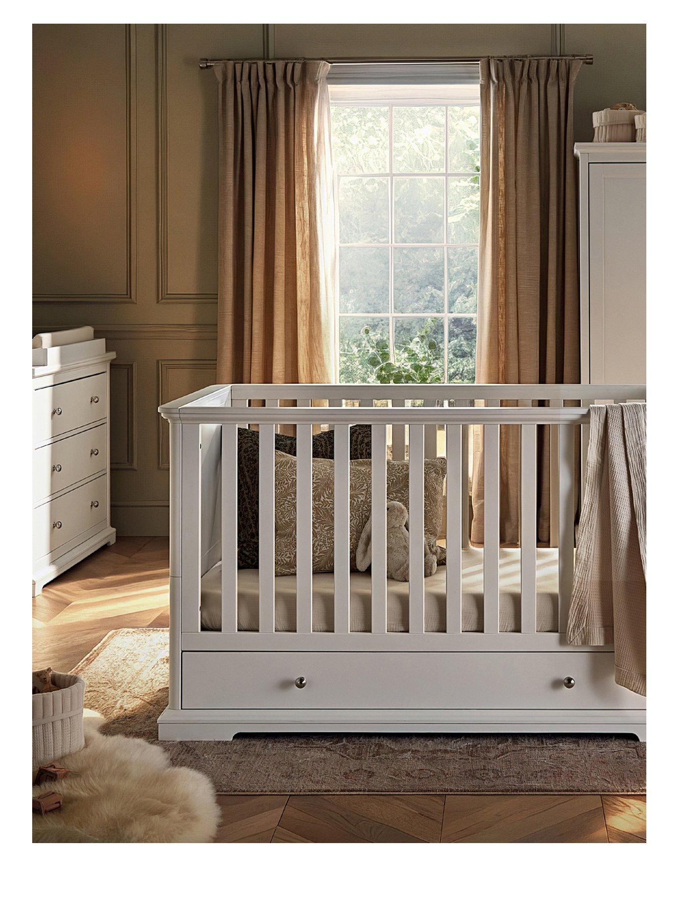 CuddleCo Beaumont 2 Piece Nursery Furniture Set - WhiteThe CuddleCo Beaumont Grand 2 Piece Nursery Furniture Set brings together statement design and practical, family-focused features to create a nursery that feels considered, calm and confidently put together from day one.At its heart is the Beaumont Grand Cot Bed, beautifully detailed with classic design elements and an integrated soft-close drawer to keep everyday essentials close at hand. Designed to support your child as they grow, the cot bed features three adjustable mattress base positions and converts easily into a toddler bed, offering long-lasting comfort through the early years. Paired with the matching dresser changer, the set provides generous storage for changing and dressing essentials. Three deep drawers help keep the nursery organised, while the removable changing top allows the dresser to transition seamlessly beyond the baby stage. Together, the pieces balance timeless style with adaptable functionality, supporting modern family life with ease. The set includes the Beaumont Grand Cot Bed and Dresser Changer. Coordinating furniture pieces, including a triple wardrobe, wall shelf and storage box, are available separately to complete the Beaumont nursery look. Compatible with all CuddleCo 140 Ã 70cm cot bed mattresses (sold separately) and the CuddleCo Cashmere Waffle 4 Piece Bedding Set.