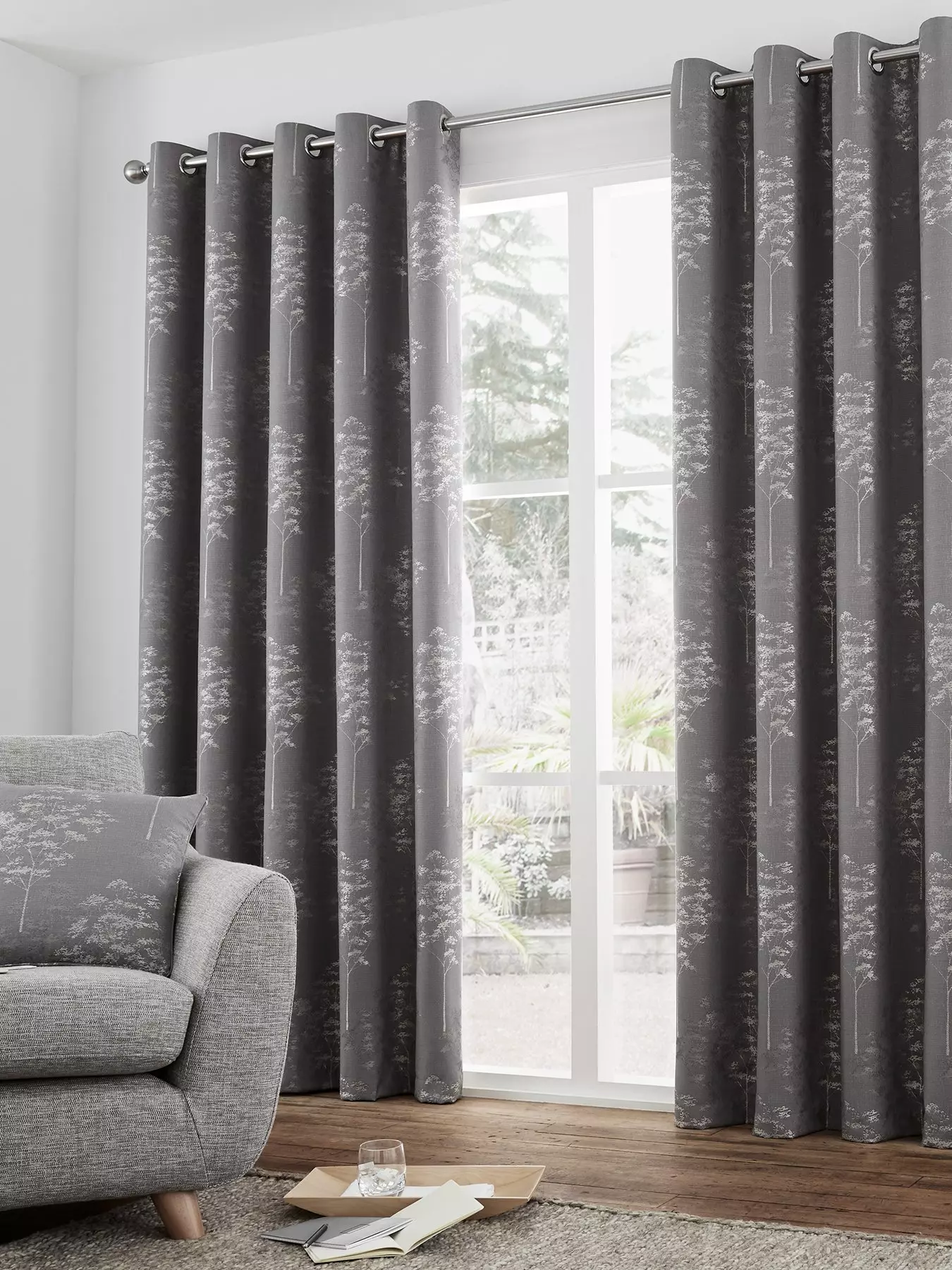 These gorgeous curtains from our Luxe Collection are an easy way to bring a feeling of natural beauty into your home.Inspired by the beauty of the great outdoors, the drapes boast a jacquard design with a forest of wonderfully detailed trees. They’re available in a choice of three colours - the neutral tones of graphite and stone are easily matched to your current palette, while the gorgeous silver option adds a subtle hint of opulence to the room.