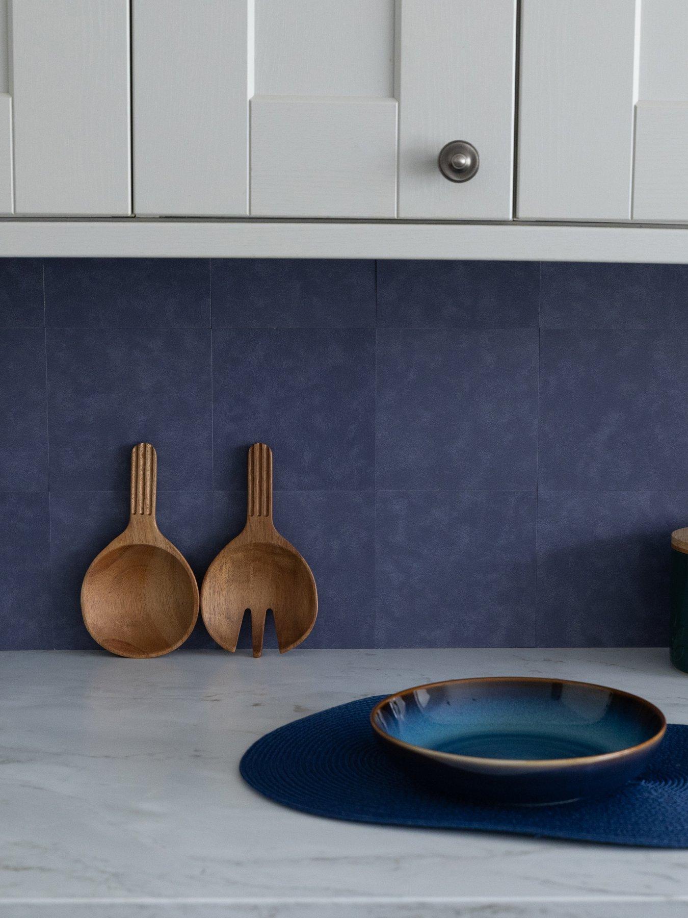 D-c-fix Self Adhesive Wall Tiles Micro Cement Blue Pack Of 18 Tilesdc fix self-adhesive wall tiles are ideal for creating a splashback area in a kitchen or bathroom, or covering up existing flat tiles. The rigid vinyl tiles are easy to apply over any size tile, the thick material will cover grout lines. Simply peel and stick the tiles to a clean flat surface and butt join together, no grouting required. To cut the tile, score with a utility knife and snap. The water resistant surface is easy to keep clean using a non-abrasive detergent. Use one design on its own or mix and match to create your own unique look. Perfect for a quick, easy and affordable splash back makeover!