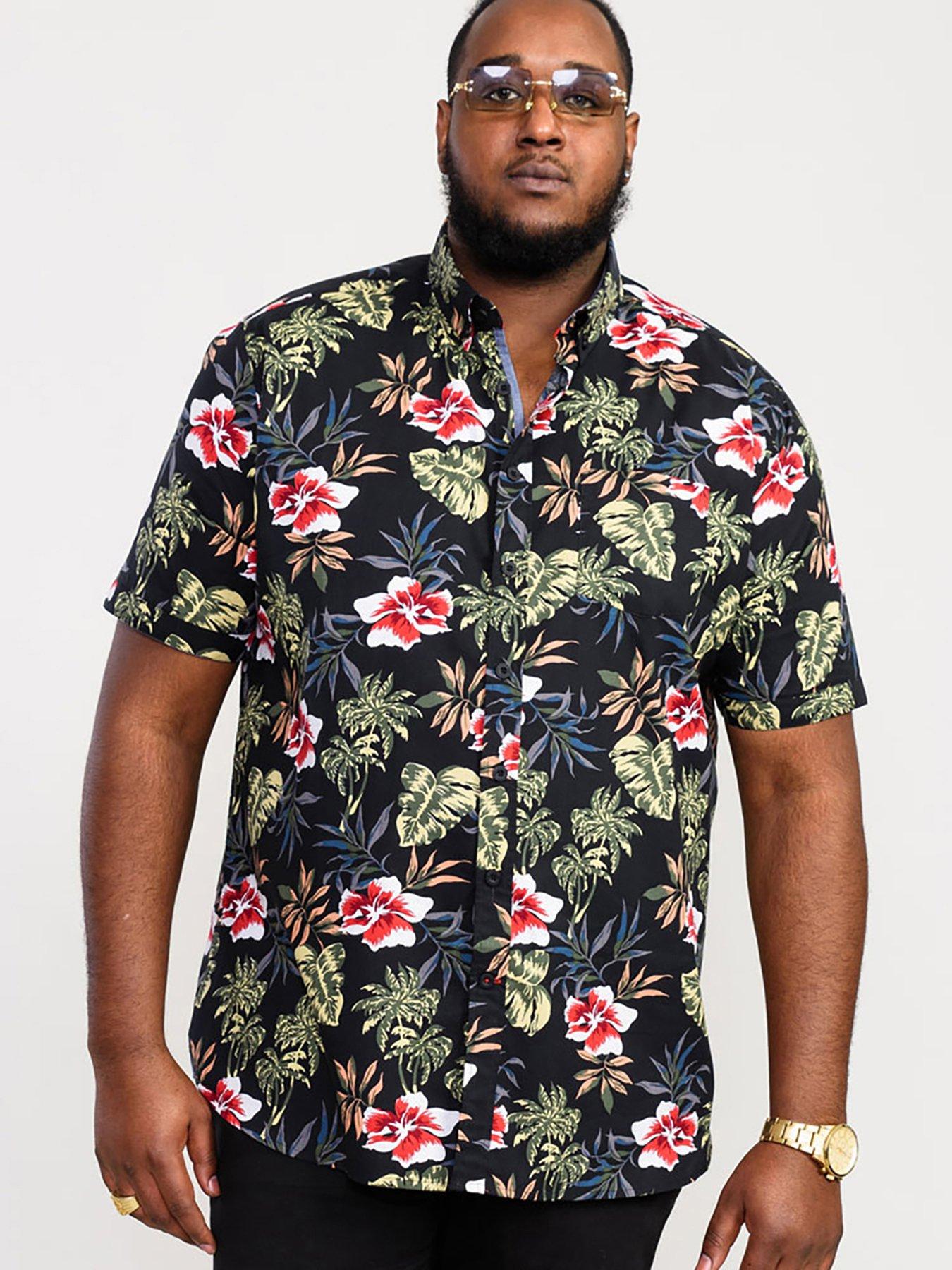 D555 Wilton Hawaiian Print Button Down Collar Shirt