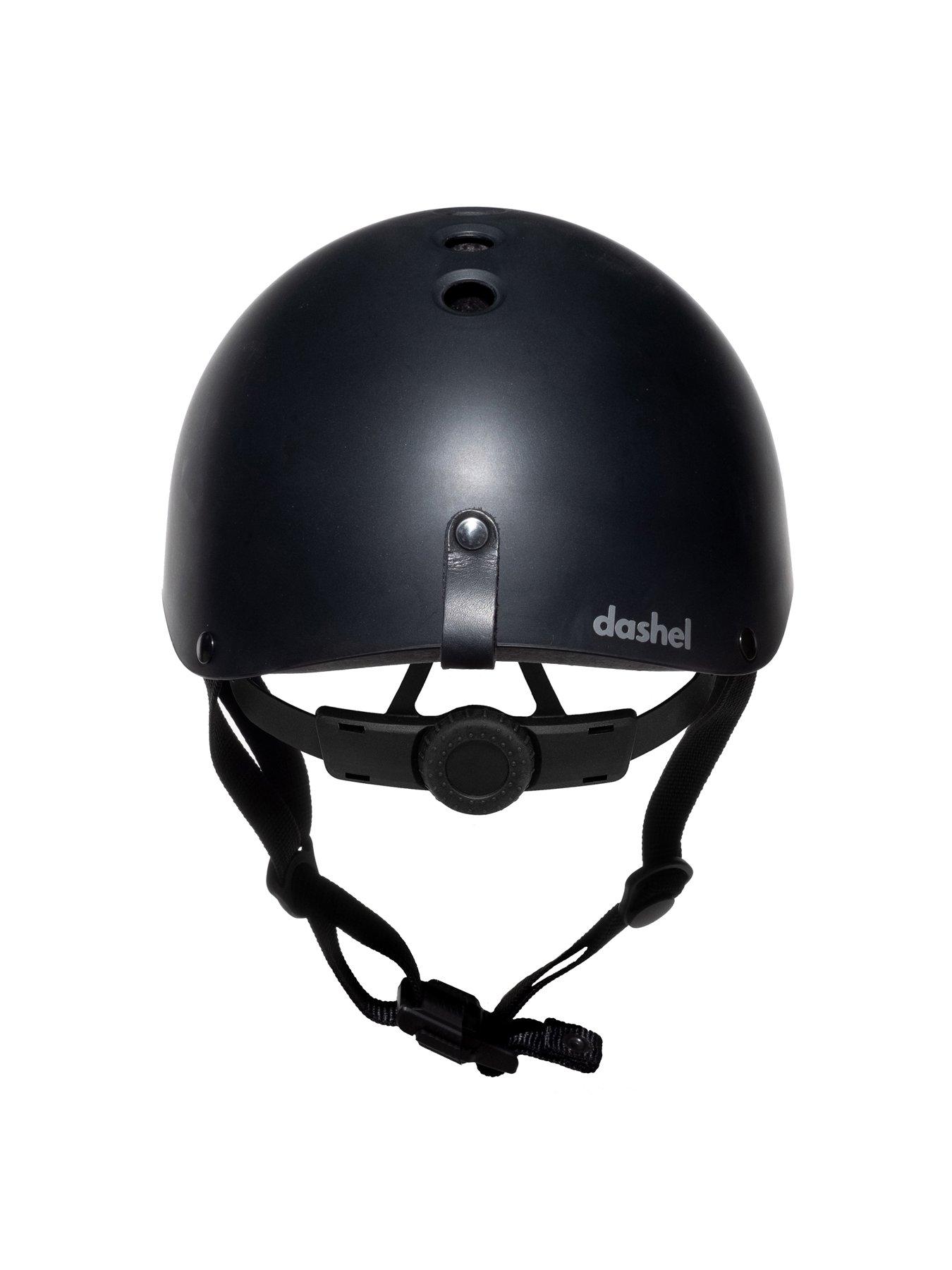 Dashel Cycle Helmet Black- Made in the UK- Safe! Certified CE EN1078 - Slim & Lightweight with 5 air vents - Fidlock Magnetic Clasp - no more pinched skin! - Integrated dial fit system - Vegan leather carrying loop - use it to attach lights to your helmet - Re-usable drawstring backpack included - Weight: Small 360g, Medium 380g, Large 430g