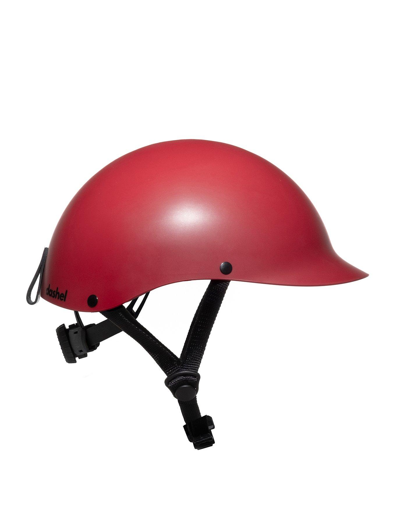 Dashel Cycle Helmet Red- Made in the UK- Safe! Certified CE EN1078 - Slim & Lightweight with 5 air vents - Fidlock Magnetic Clasp - no more pinched skin! - Integrated dial fit system - Vegan leather carrying loop - use it to attach lights to your helmet - Re-usable drawstring backpack included - Weight: Small 360g, Medium 380g, Large 430g