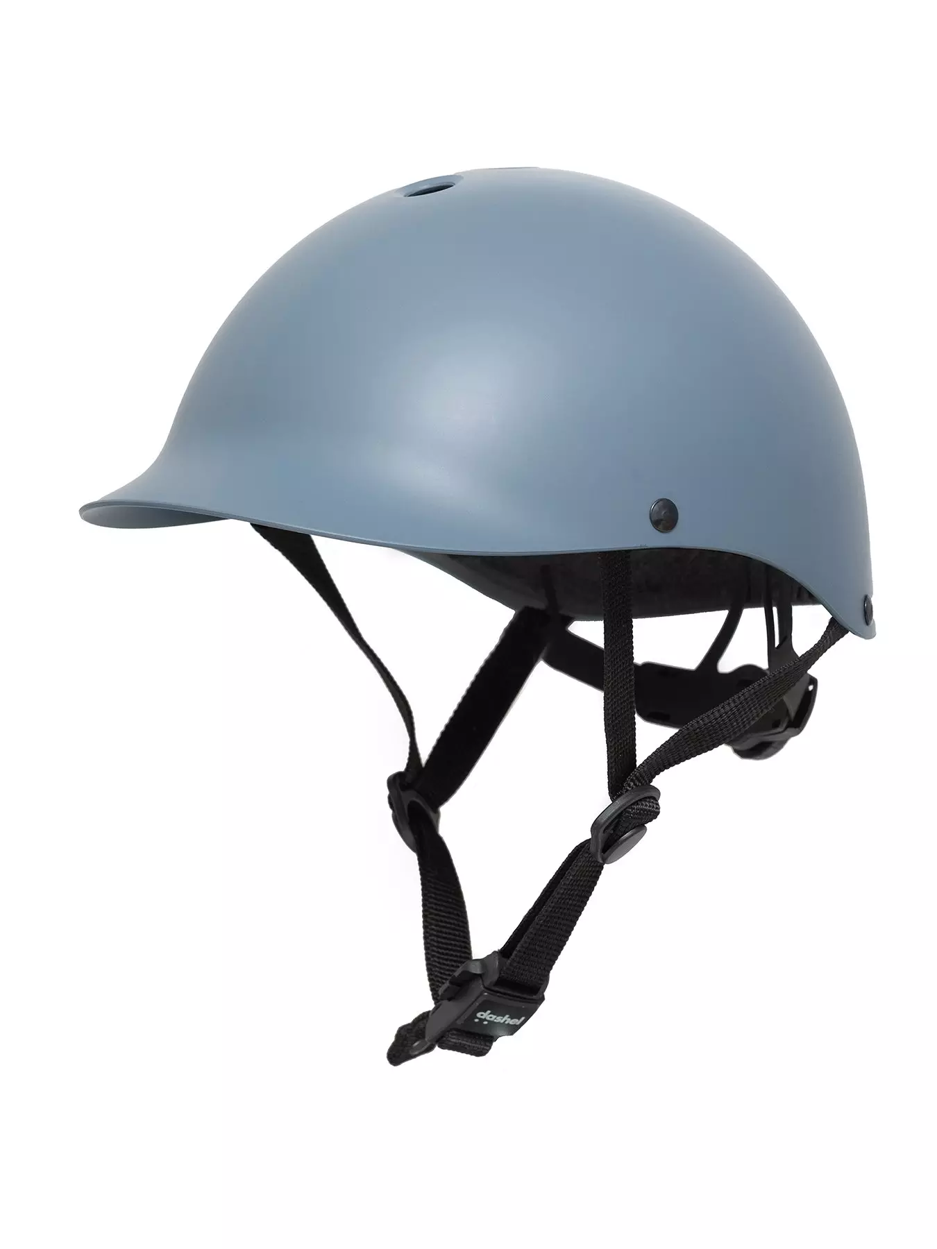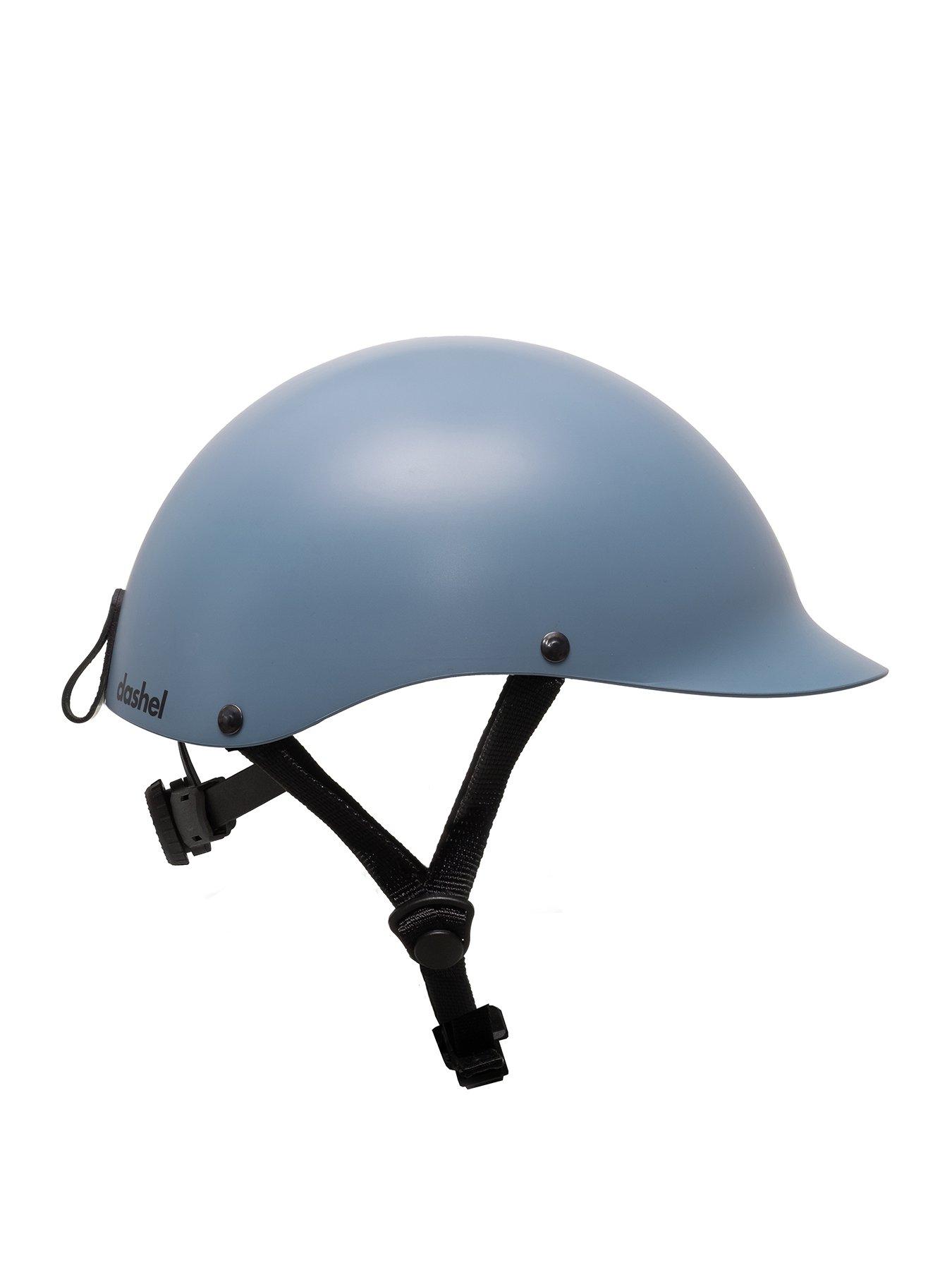 Dashel Cycle Helmet Slate Blue- Made in the UK- Safe! Certified CE EN1078 - Slim & Lightweight with 5 air vents - Fidlock Magnetic Clasp - no more pinched skin! - Integrated dial fit system - Vegan leather carrying loop - use it to attach lights to your helmet - Re-usable drawstring backpack included - Weight: Small 360g, Medium 380g, Large 430g