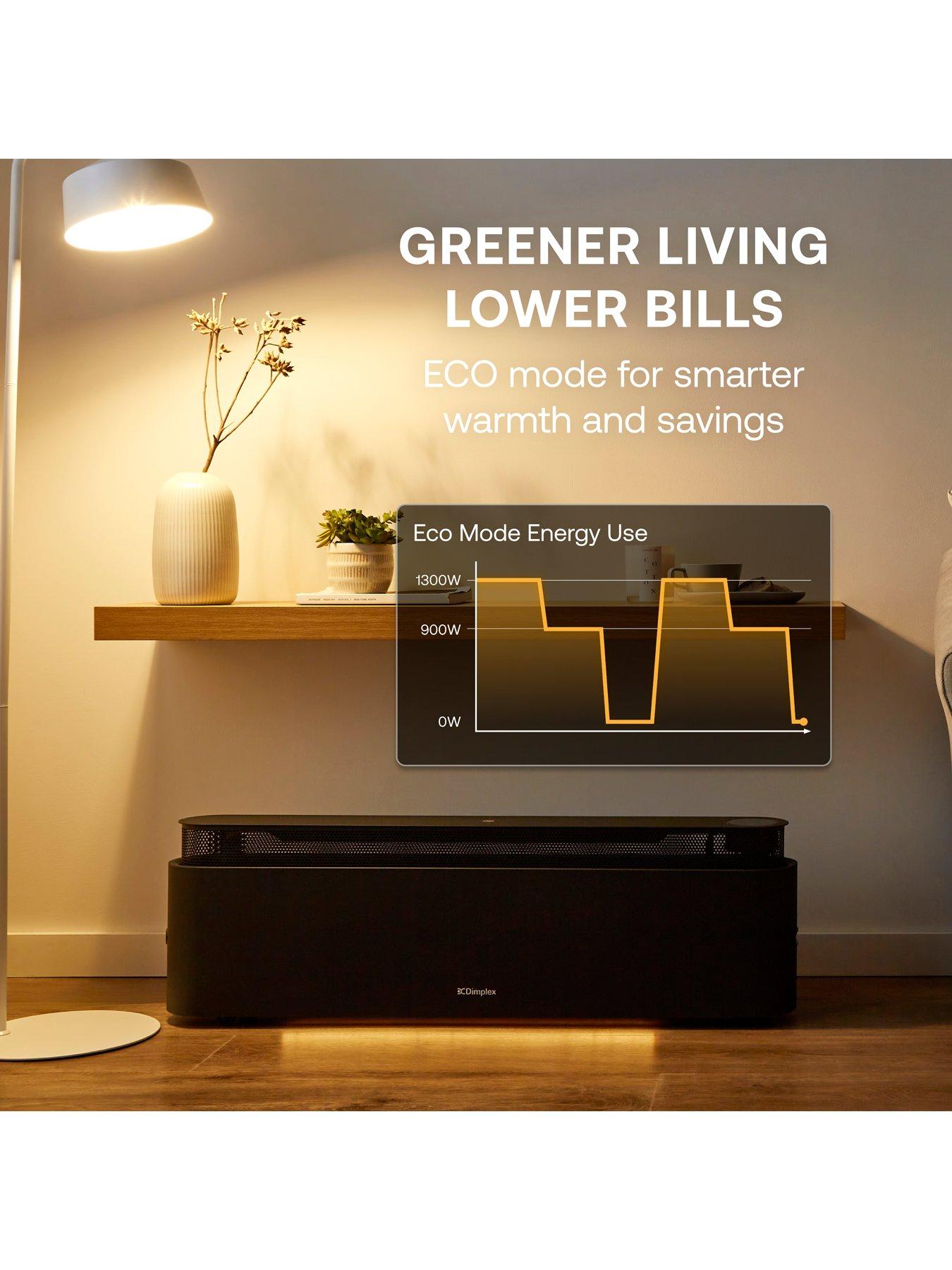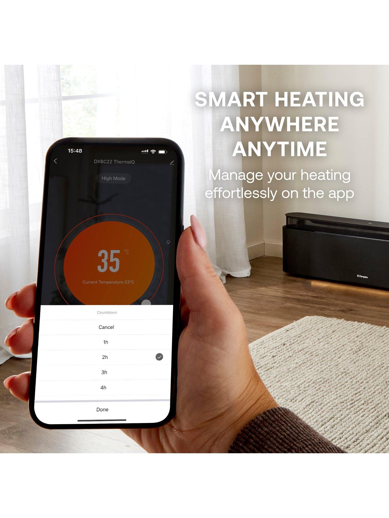 Dimplex Dimplex DXBC22 ThermaIQ Smart WiFi Baseboard Convector Heater - BlackStay warm in style with the Dimplex ThermaIQ Smart Baseboard Convector Heater- a sleek, high-performance heater for medium to large rooms up to 22m². With a powerful 2.2kW output, three heat settings, and a built-in fan, it circulates warm air up to twice as fast as standard convectors*, delivering quick, even comfort throughout your space. Its futuristic motorised air outlet rises when in use and retracts when off, preserving its clean, modern look. Smart adaptive heating maintains a consistent temperature, while eco mode helps reduce energy use by adjusting output as your room warms up. Effortless to control via the LED display or Tuya app, you can schedule heat with the 7-day timer, set temperatures remotely, or preheat your room before you get home - anytime, anywhere. Whisper-quiet and fully portable with castors and handles, it's ideal for bedrooms, lounges and home offices. Safety features include overheat protection, a tilt switch, and fire-resistant materials. The Dimplex ThermaIQ is more than just a heater - it's intelligent warmth with a cutting-edge design.