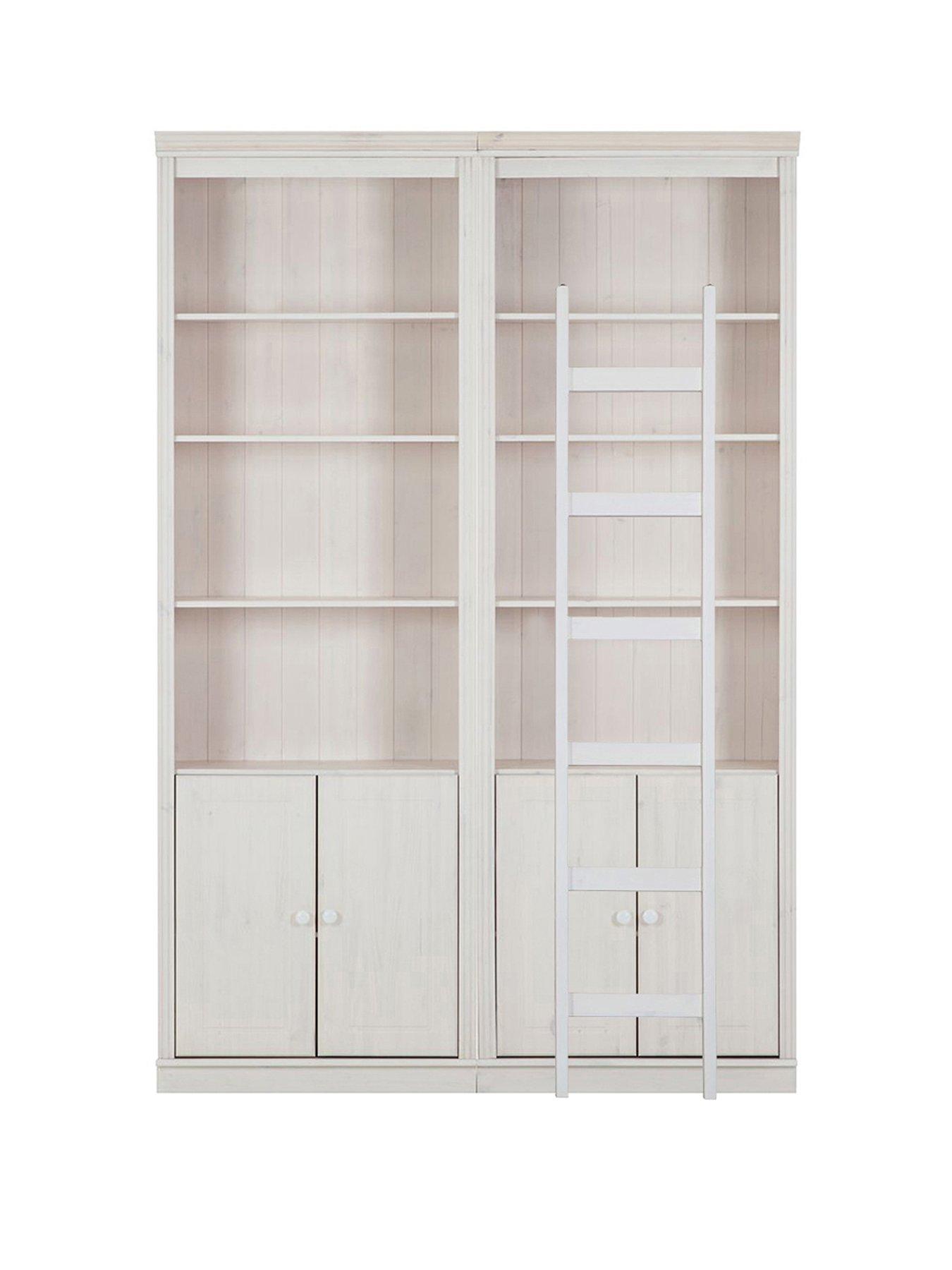Dorel Home Anita Double Display Wall Unit With LadderThis bookcase / display unit is a timeless classic that offers exceptional versatility. It serves as a practical storage solution and can be styled in various ways to suit different spaces within the home. Includes shelves on each side and conceled units with double doors at the bottom. An added feature of the ladder for easy access to the higher shelves.