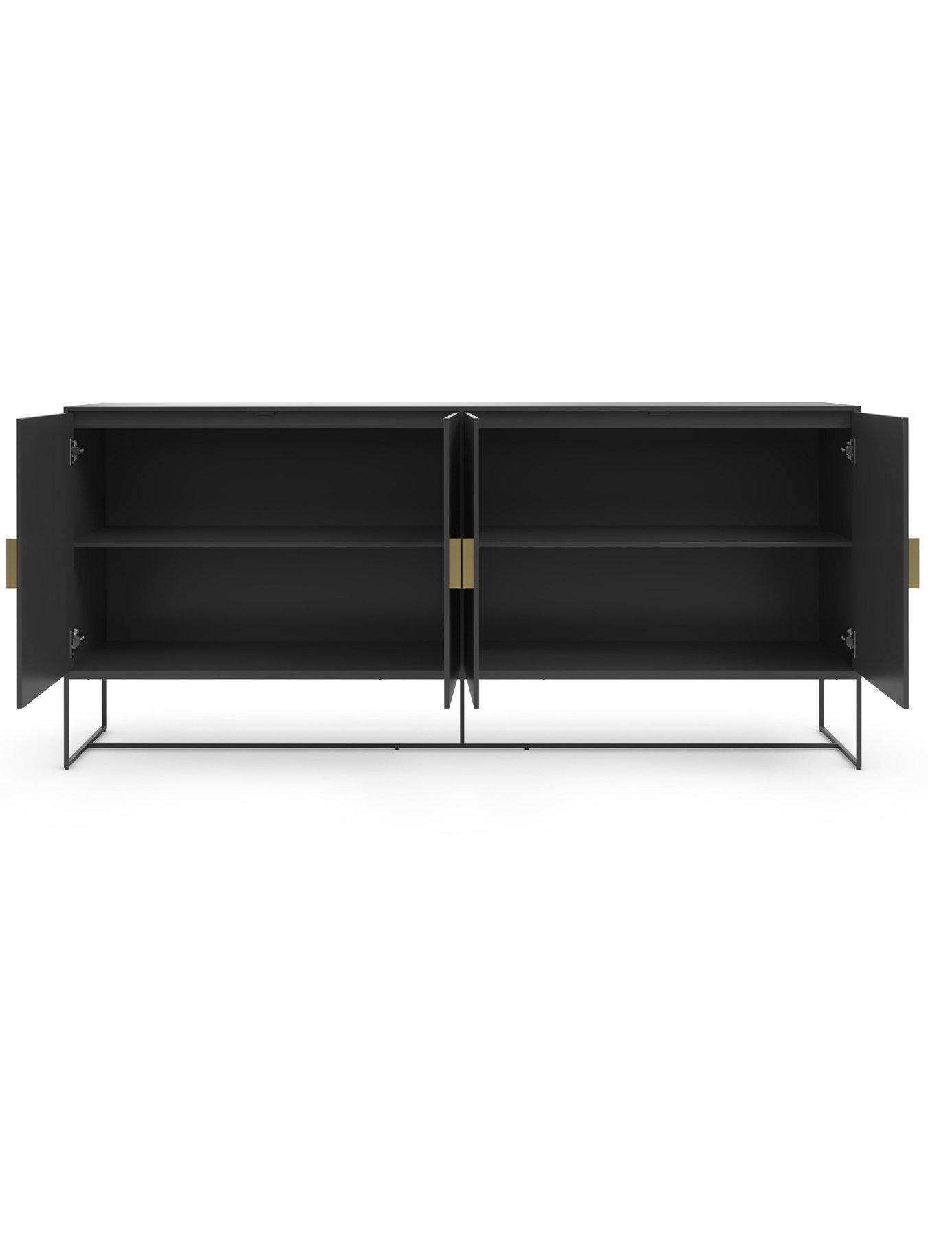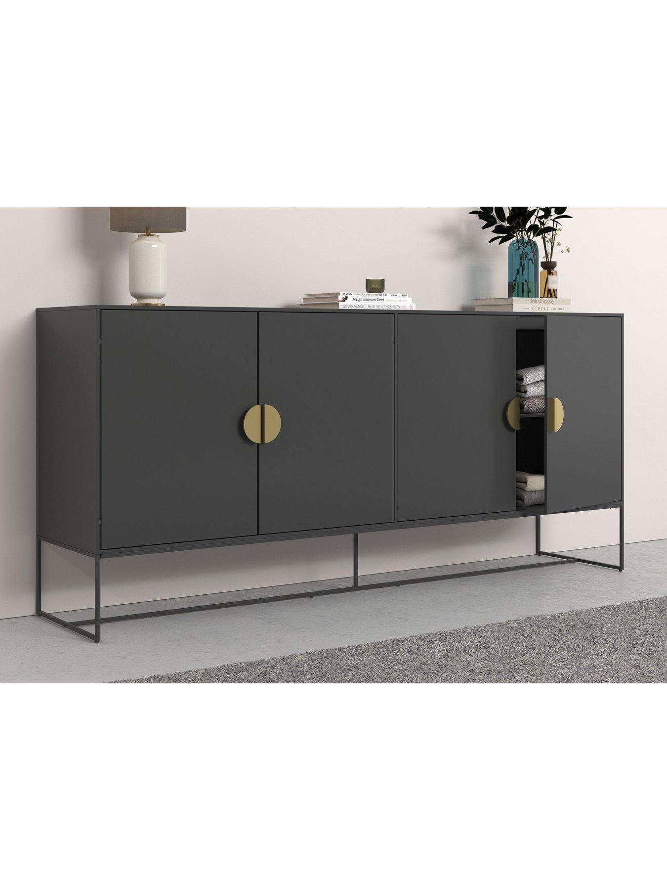 Dorel Home Asia 4 Door Sideboard CabinetWith this piece of furniture, you can bring a modern design language into your interior. High-gloss surfaces and elements made of chrome or stainless steel round off the modern living style . For inspiration: By keeping the furnishing accessories in subtle colors such as white or gray, you emphasize the minimalist, clean style.