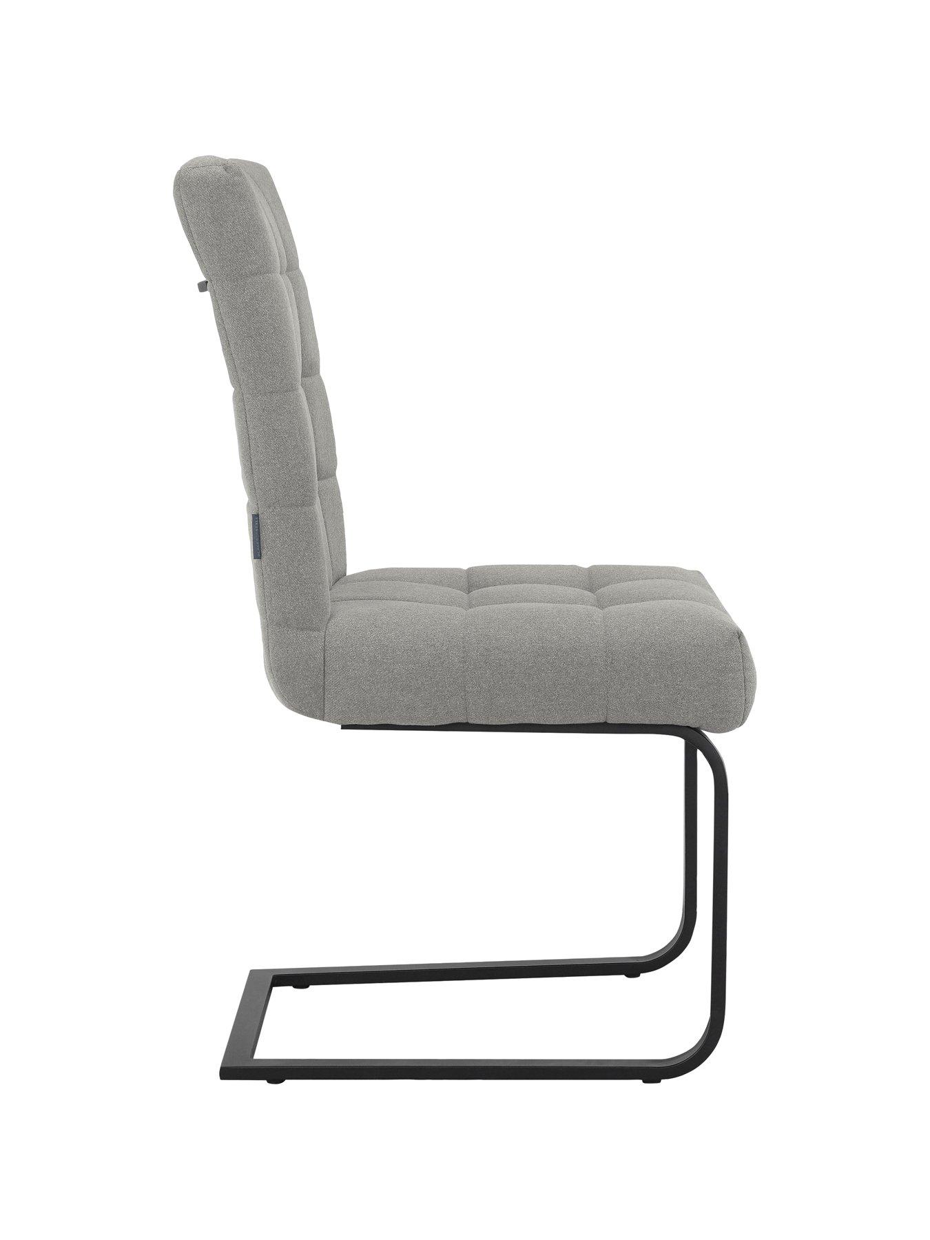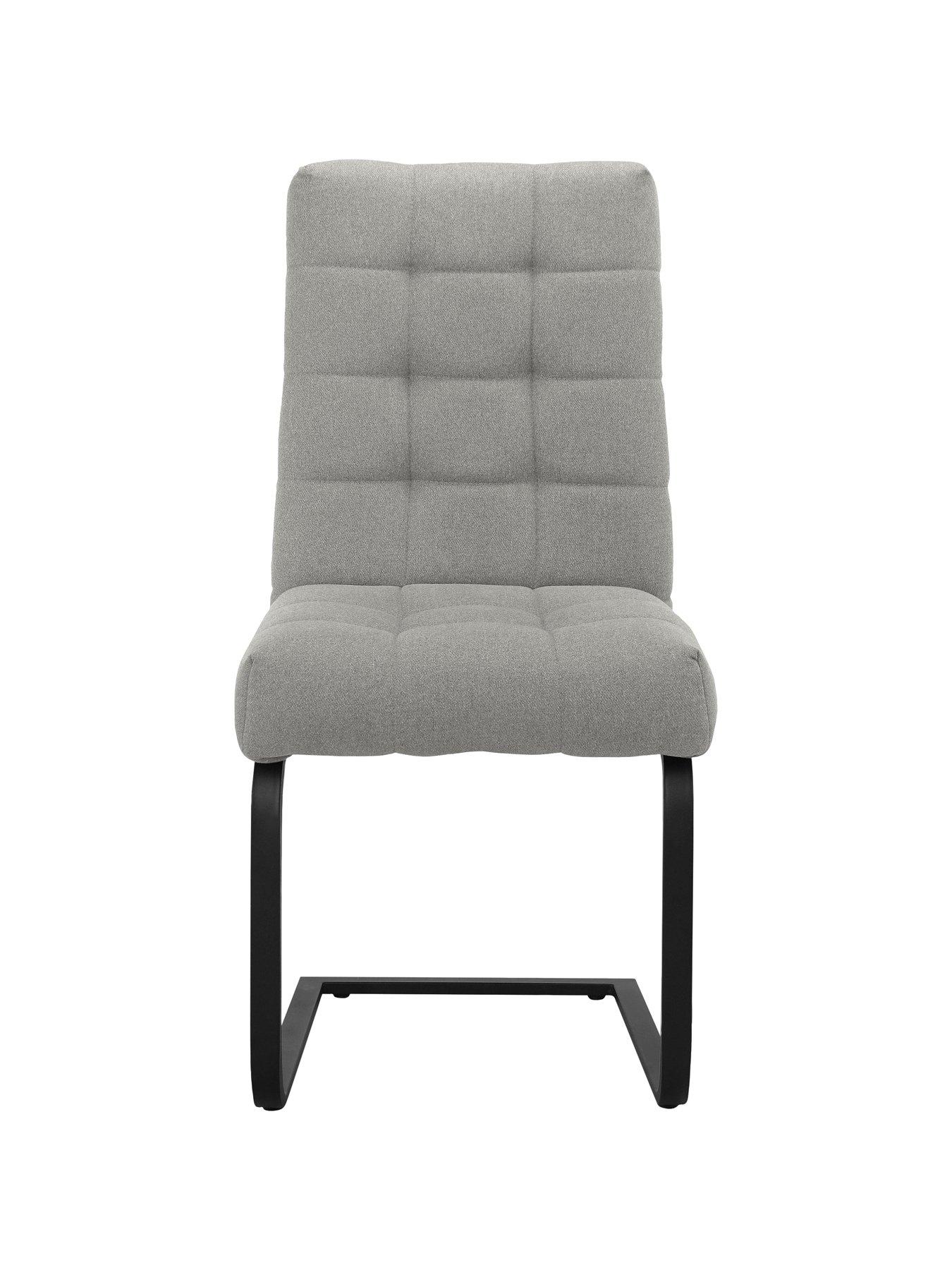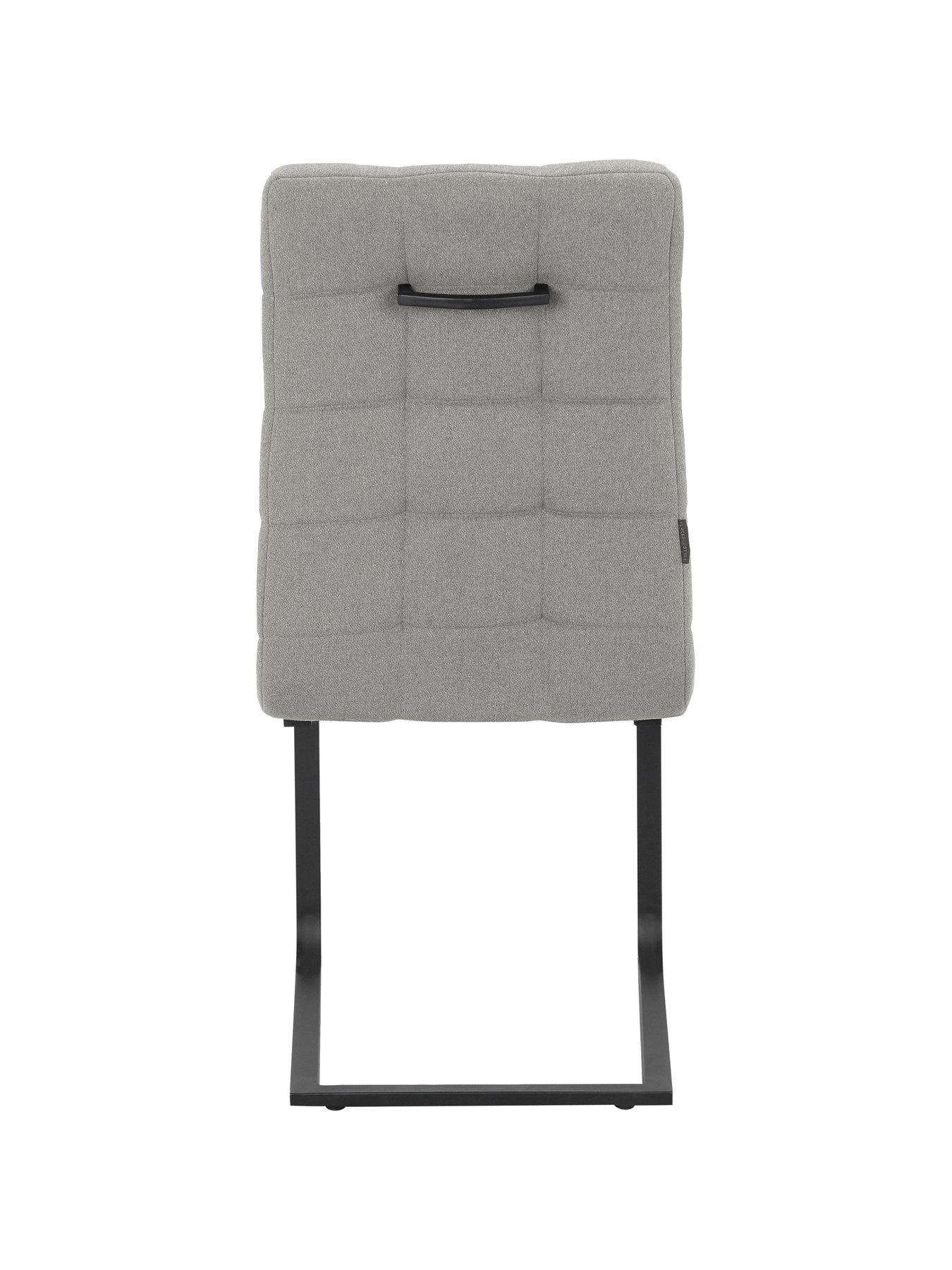 Dorel Home Terza Set of 2 Upholstered Dining ChairsThis set of two chairs features a sleek, contemporary design that combines comfort with modern aesthetics. Each chair is upholstered in soft, light grey fabric with a stylish grid-tufted pattern on the seat and backrest, adding texture and visual interest. The high back provides ergonomic support, while the cushioned seat ensures comfort for extended sitting. The chairs are supported by black cantilever-style metal frames, creating a minimalist yet sturdy base that enhances stability and adds a chic industrial touch. Perfect for dining rooms, offices, or meeting spaces, these chairs offer a blend of functionality and elegance for any modern interior.