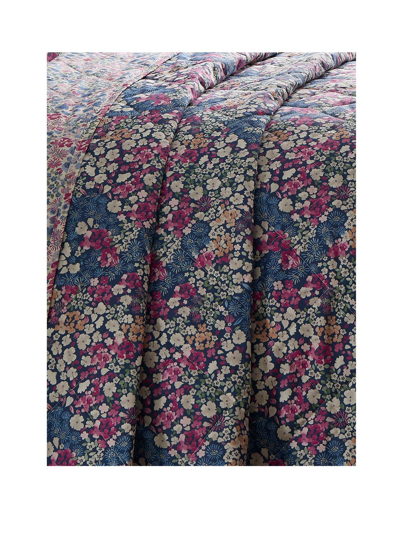 Dreams & Drapes Bessie Quilted BedspreadEnvelop your bedroom in classic refinement with the Bessie Quilted Bedspread by D&D. This luxurious bedspread features a contemporary ditsy floral print that artfully adorns a deep, dark background, creating an aesthetic of timeless elegance and modern charm.The Bessie bedspread is thoughtfully designed with a contrasting reverse, presenting the same delicate floral pattern on a light background. This reversible feature offers versatility in styling, allowing you to curate a harmonious and sophisticated look for your bedroom. Crafted with exceptional care from easy-care polycotton, the Bessie Quilted Bedspread combines the sumptuousness of soft, comfortable fabric with the practicality of effortless maintenance.