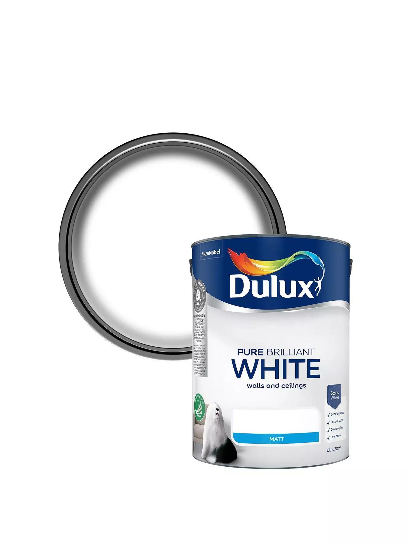 Dulux Matt is a smooth and creamy emulsion paint for use on walls and ceilings which is ideal for a modern, flat finish.- Depth: 18.5 CM
