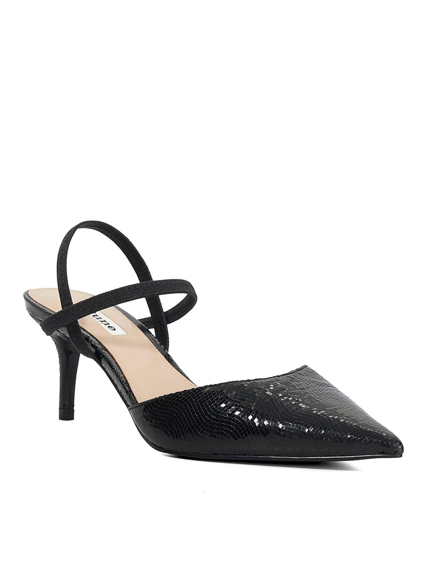 Dune London Classical Stiletto Heeled Courts - BlackRevamp your occasion edit with our Classical courts. Set on a medium stiletto heel this design is certain to become the focal point of your ensembles. Detailed with an elasticated slingback for a comfortable fit this point-toed silhouette will refresh your looks in an instant.