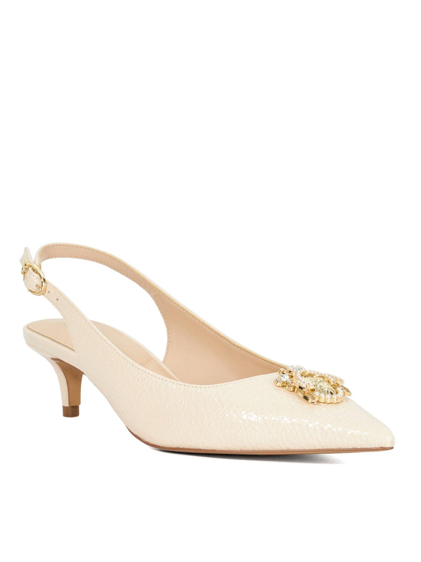Dune London Context Slingback Bug Detail Shoe - EcruKeep it cute with Context pretty slingbacks that you'll love to wear on evenings out and special occasions. Decorated with our signature Dune Bug charm this style brings a whimsical touch to any outfit. The pointed toe adds a refined silhouette while the kitten heel provides just the right amount of lift without compromising on comfort. Whether paired with a fitted midi dress or tailored trousers these shoes are sure to keep you looking and feeling fabulous all night long.