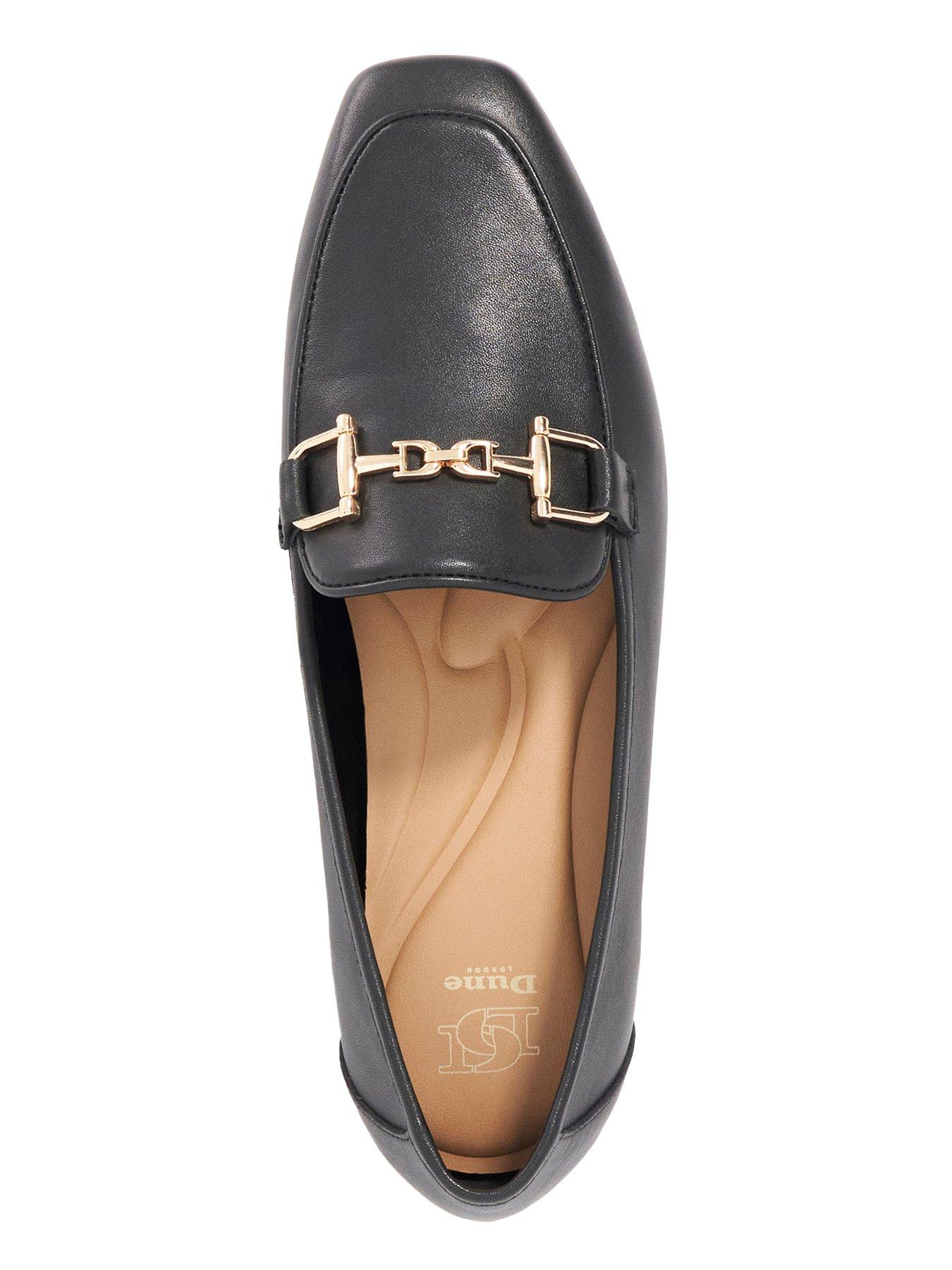 Dune London Grained Snaffle Leather Loafer - BlackThis contemporary loafer profile features an elegant almond toe silhouette and rests on a low stacked heel. Crafted in soft black leather they feature our signature double D snaffle in gold hardware.