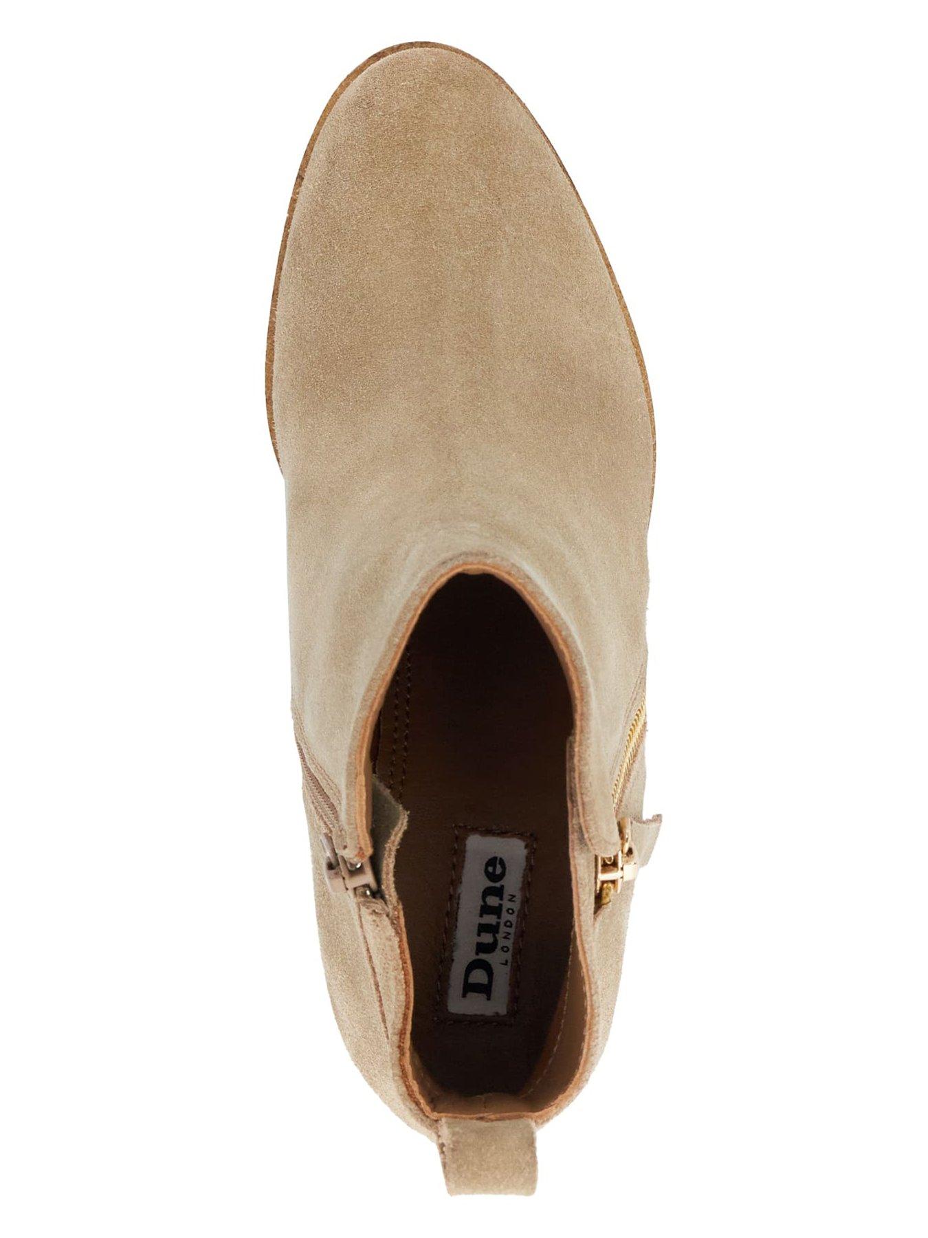 Dune London Paicing Ankle Boots - TaupeDesigned with gold-tone side zip detailing and signature Dune London branding to the back these boots are the perfect transitional style. Set on a mid block heel and featuring a handy pull tab they're easy to wear and easy to style.
