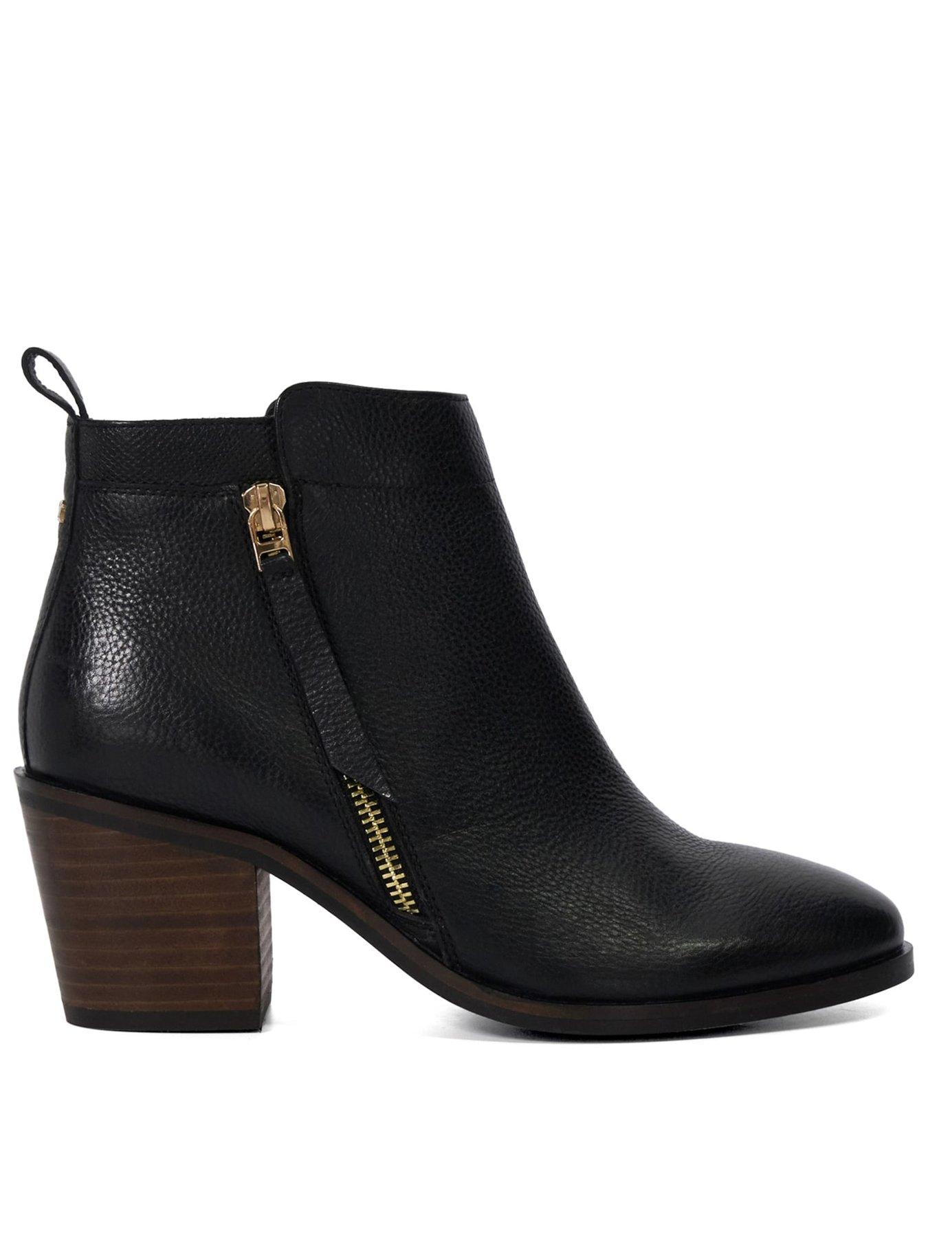 Dune London Paicing Leather Side Zip Ankle Boots - BlackDesigned with gold-tone side zip details and signature Dune London branding to the back, these leather boots are a must-have this autumn/winter. Set on a mid block heel and featuring a handy pull tab, they're an easy to wear and easy to style pair.