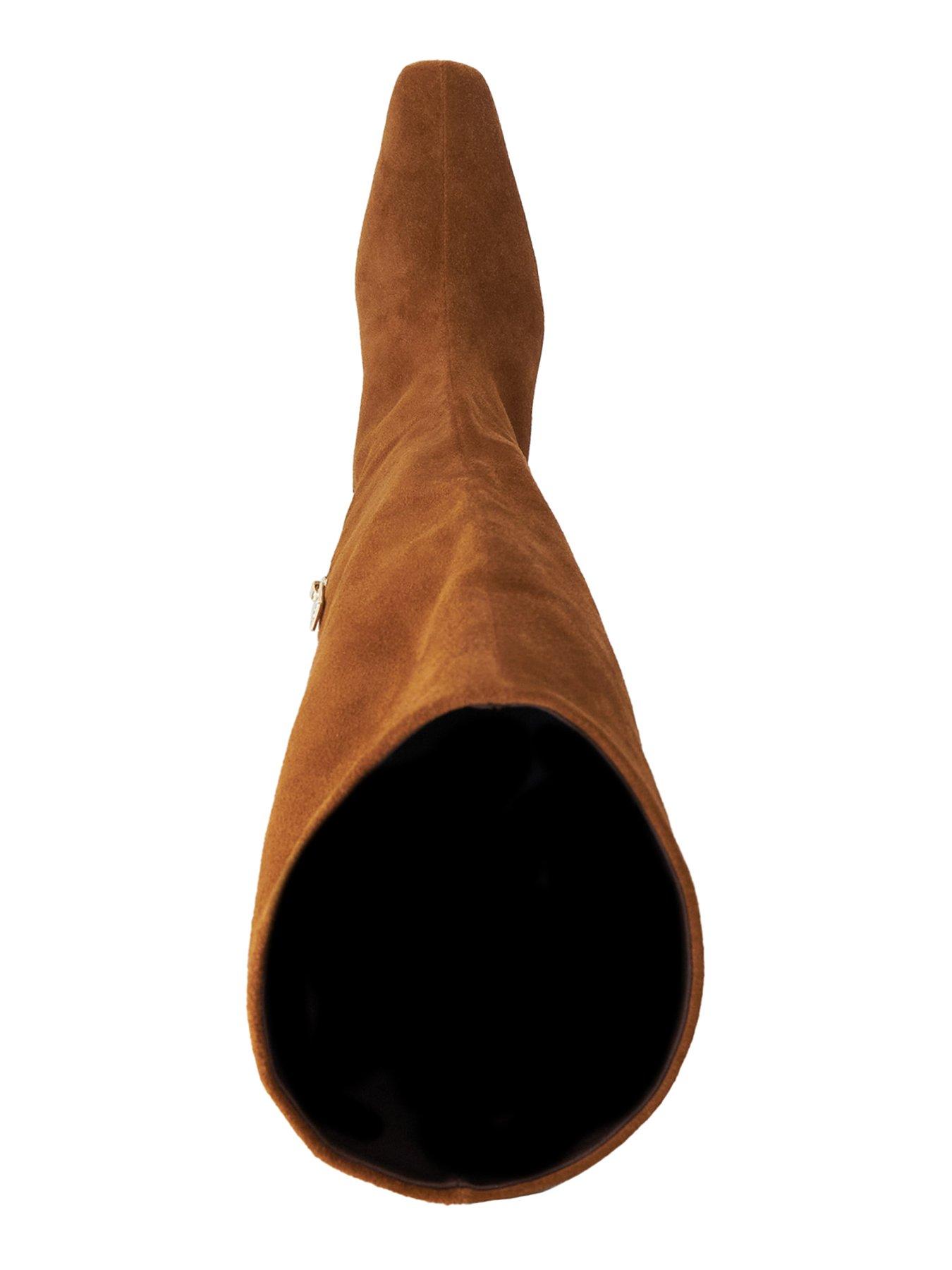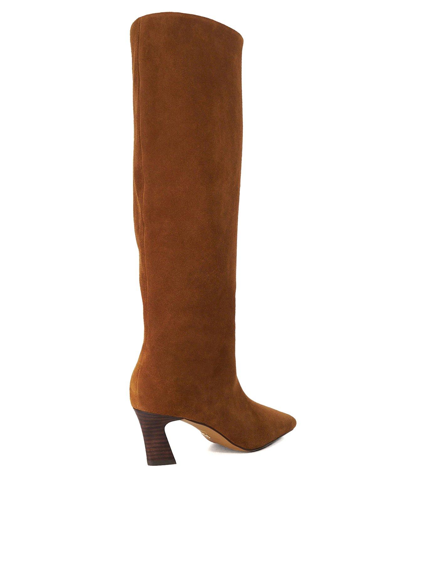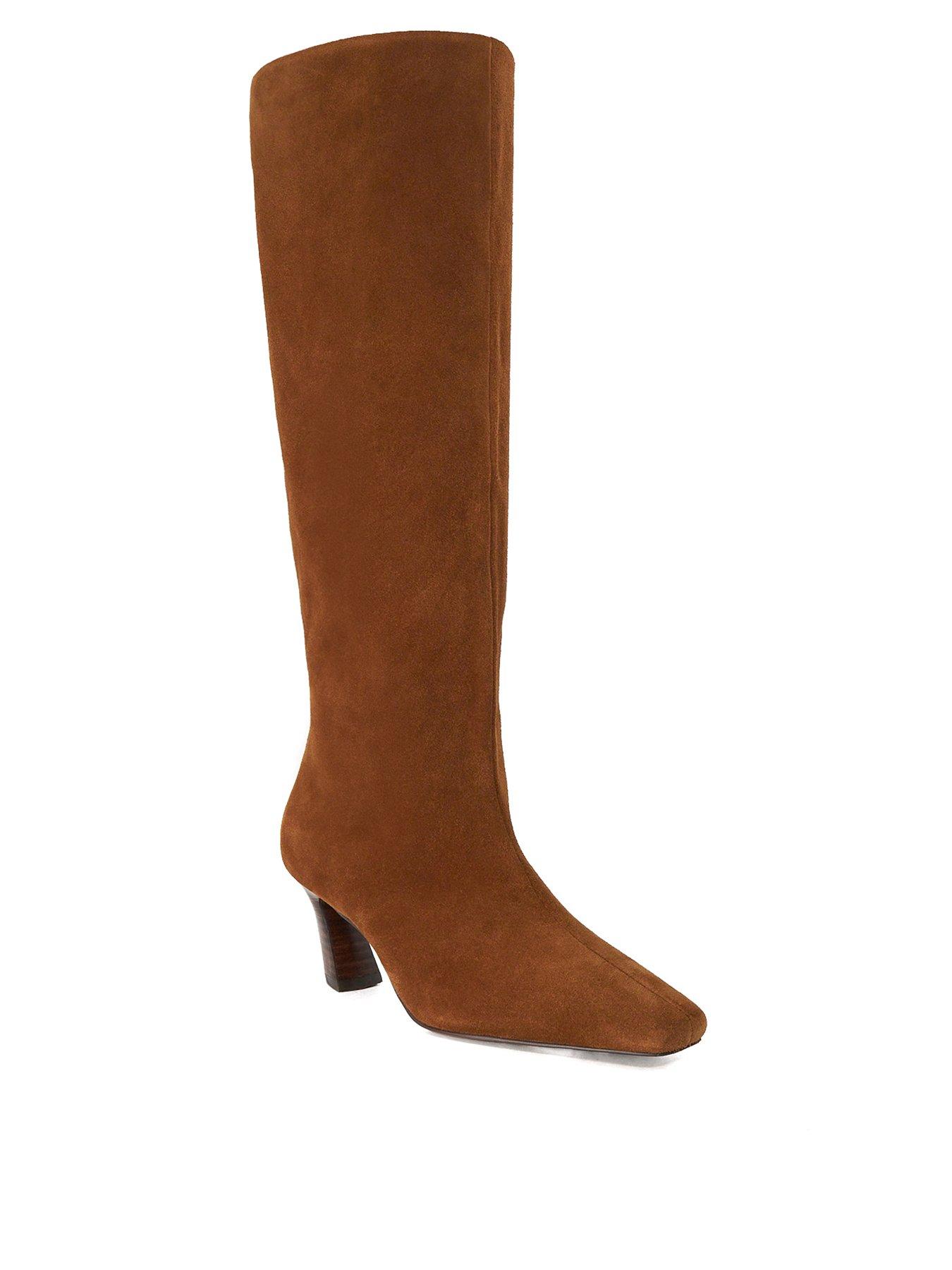 Dune London Selinni Suede Knee High Boot - Dark TanExpertly crafted from soft suede, Selinni is a chic and versatile cold-weather essential. Boasting a square toe, slanted block heel, and zip fastening, it's as comfortable as it is statement-making. Cut to a flattering knee-high length, Selinni compliments a wide range of outfits. Team with a knitted midi dress and oversized leather tote bag for a stylish chilly-day look.