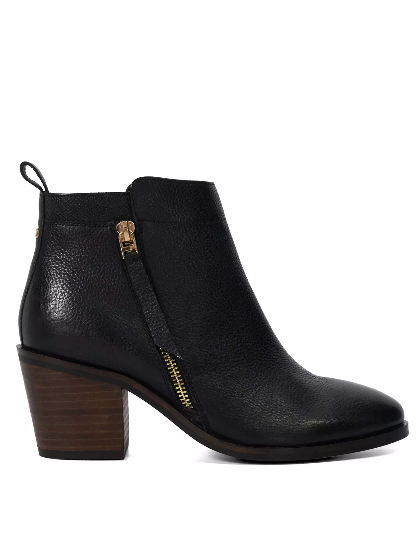 Designed with gold-tone side zip details and signature Dune London branding to the back these boots are a must-have this autumn/winter. Set on a mid block heel and featuring a handy pull tab they're an easy to wear and easy to style pair.- Material Content: LEATHER