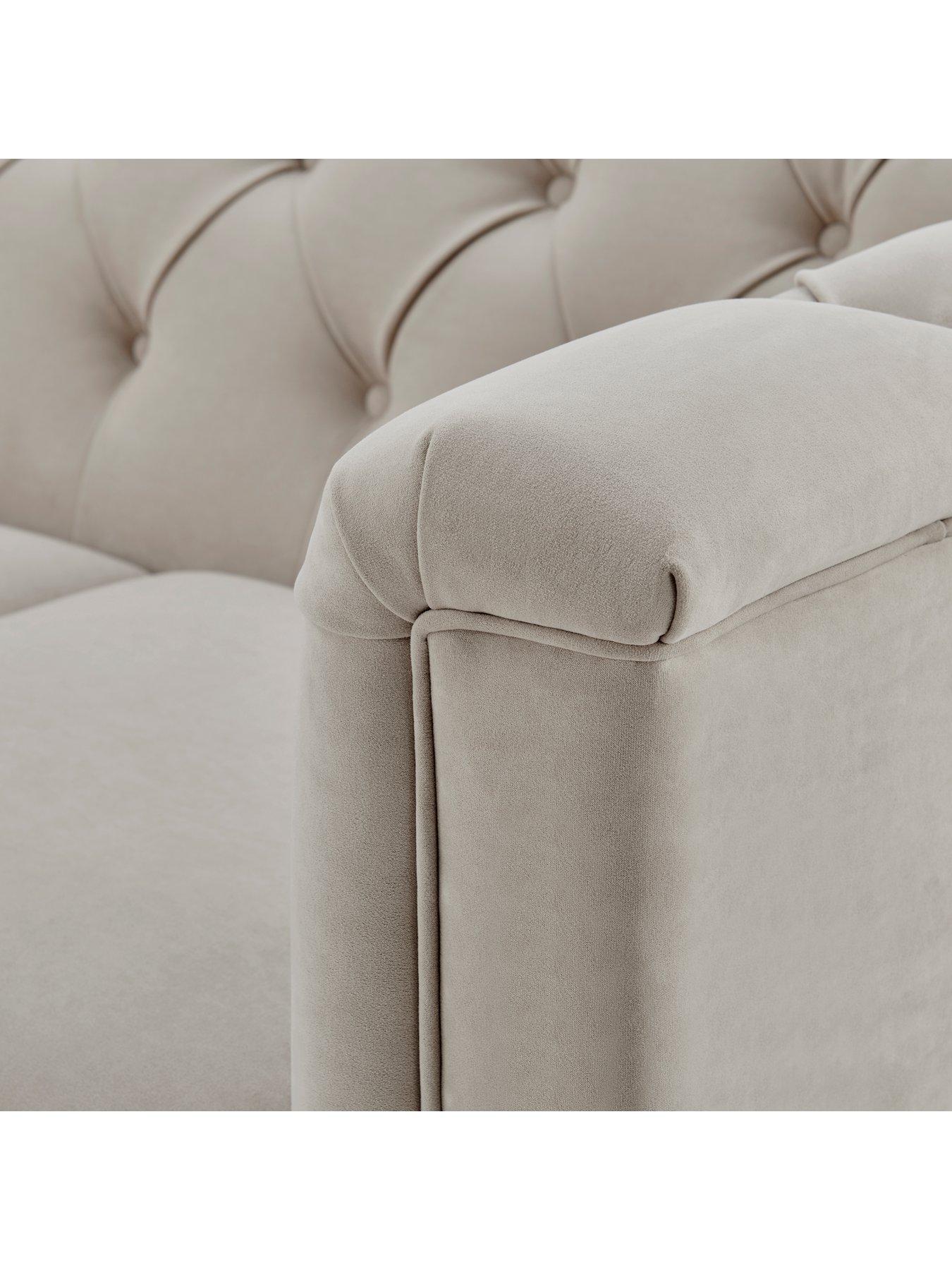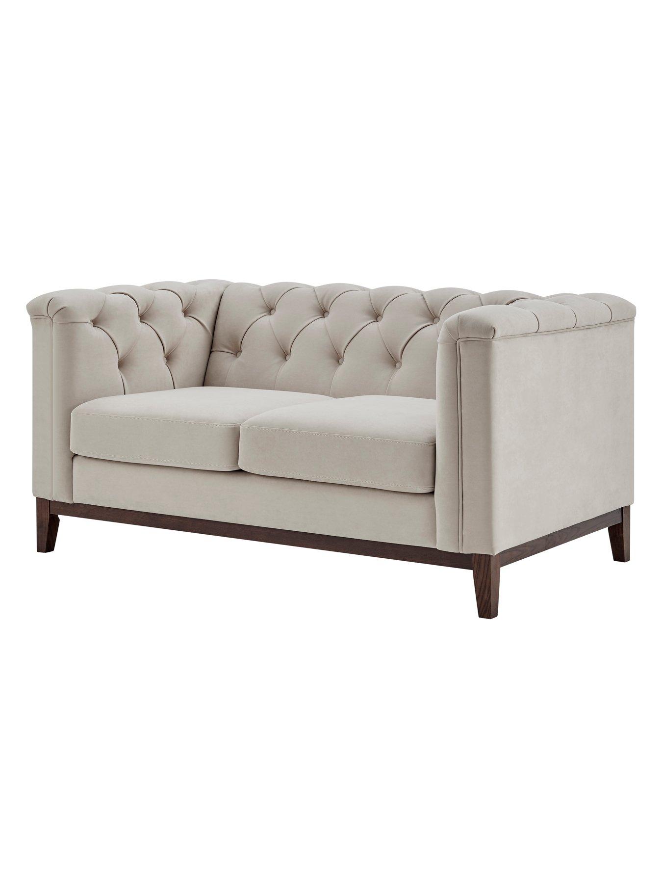 Dusk Chesterfield 2 Seater Sofa - StoneUnwind in style with the matte velvet 2 seater sofa in stone from the Chesterfield collection.Premium style, made to last Whether you're enjoying time to yourself with your favourite boxset or catching up with friends, the Chesterfield 2 seater sofa will blend seamlessly into any traditional or modern living space. Made with a premium matte velvet fabric in a neutral shade of stone, it features a stunning quilted button design for a touch of flair and classic charm, whilst a beautiful dark wood frame provides a stylish colour contrast and lasting durability. Mix and match throughout your home, or complete the look with the entire Chesterfield collection which includes: 2 seater sofa 3 seater sofa Armchair Pouffe Keep in mind: Our styled room images are for inspiration only, and colours may vary depending on lighting and surroundings. For the truest colour reference, please see the product images on a plain background.